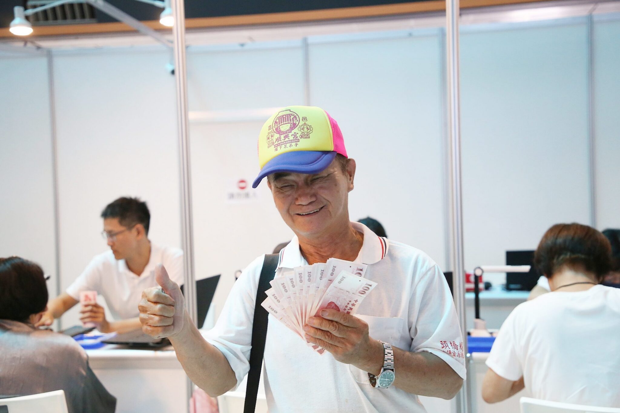 凌晨兩點半就來排隊、拿到1號號碼牌的溫先生表示,每年都會參加滿千送百活動,現在發票中獎機率不高,拿發票來換回現金就像賺到一樣,當然不能錯過。拿到2號號碼牌的賴先生則在凌晨三點前來排隊,他表示滿千送百鼓勵拿發票兌換現金,相當特別;去年曾參與滿千送百活動,但因為在下午前來兌換時已額滿,不得不放棄,今年下定決心要搶到名額,把握兌換現金機會。