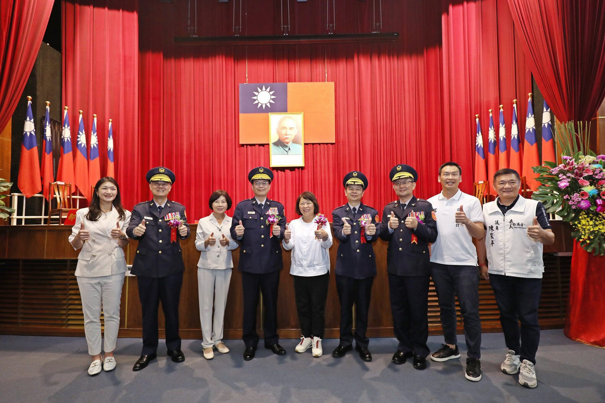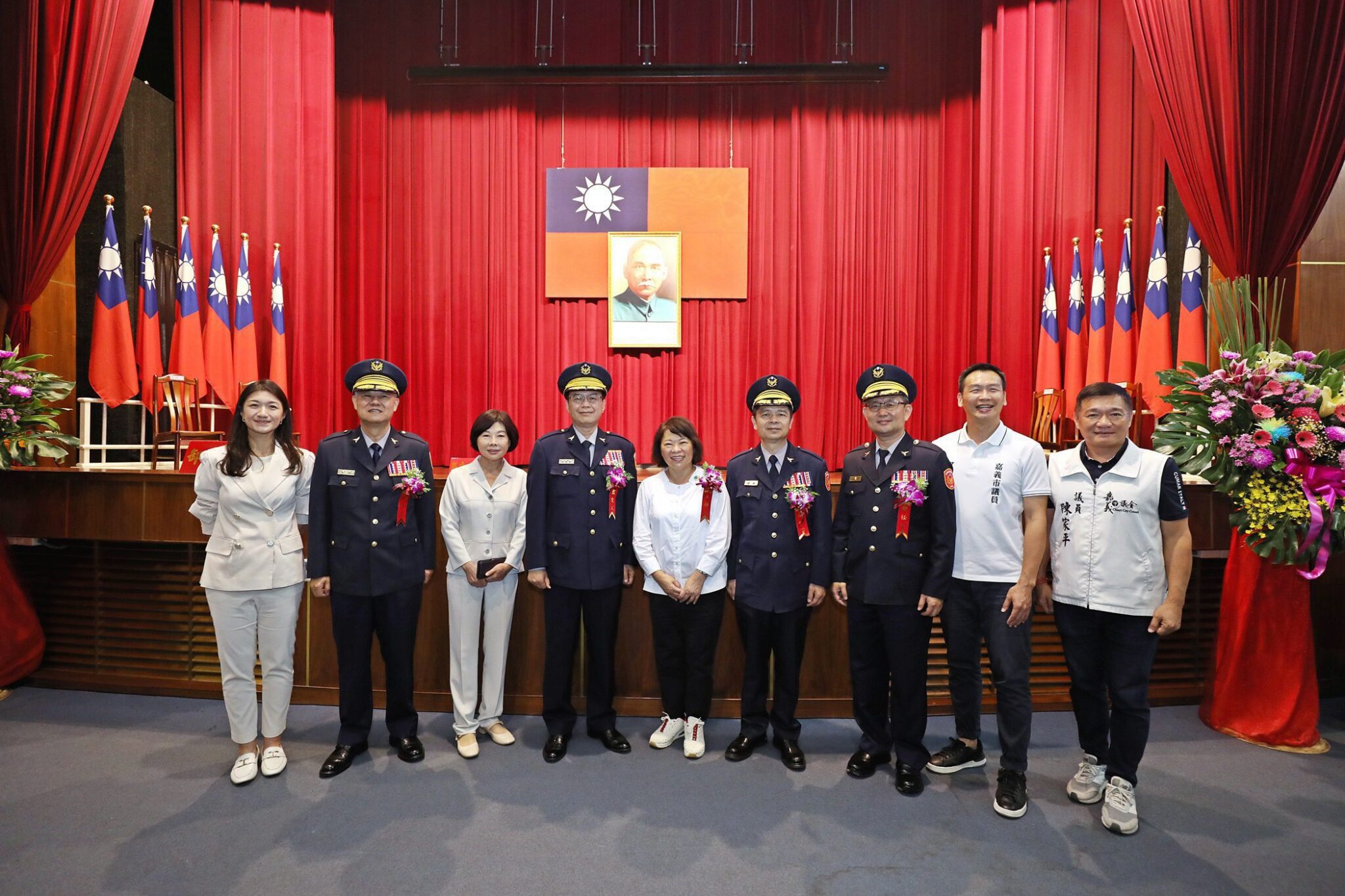 嘉義市政府警察局今(1)日於警察局5樓禮堂,舉行卸、新任局長交接典禮,由市長黃敏惠親自蒞臨主持,內政部警政署警政委員王文澤監交,嘉義市議會議長陳姿妏與多位議員及民防、警友會等民間協力單位與各界賢達皆出席與會,熱鬧溫馨。黃敏惠感謝卸任局長沈炳信全心投入守護嘉義市治安,成效獲市民肯定,也歡迎新任局長陳明志與副局長楊慶裕加入市府團隊,並期勉新局長能於既有的堅實基礎上持續努力,打造「全齡共享、世代宜居」安全幸福的城市。