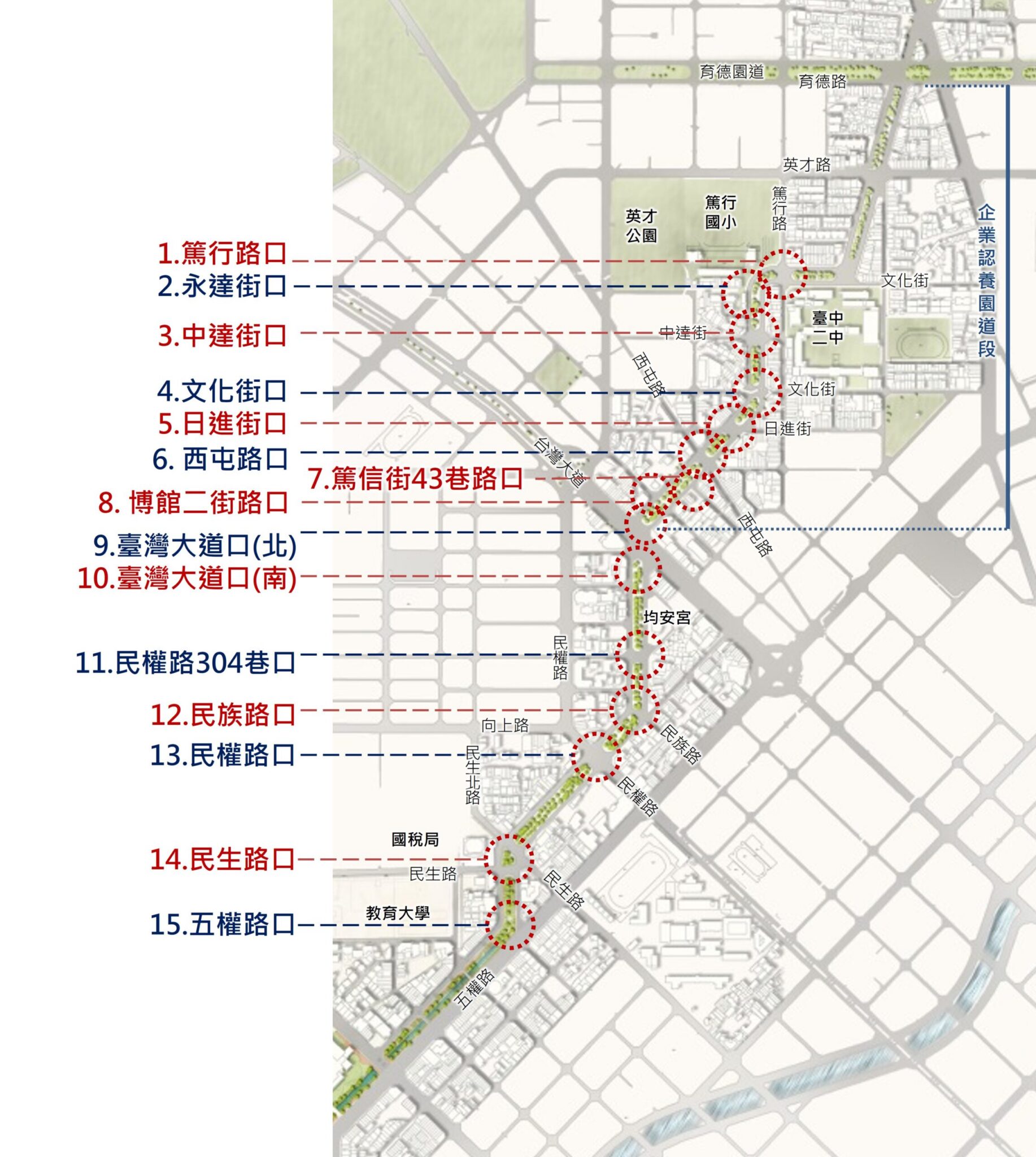 梅川周邊人行道改善工程(第二期)15處路口改善位置圖