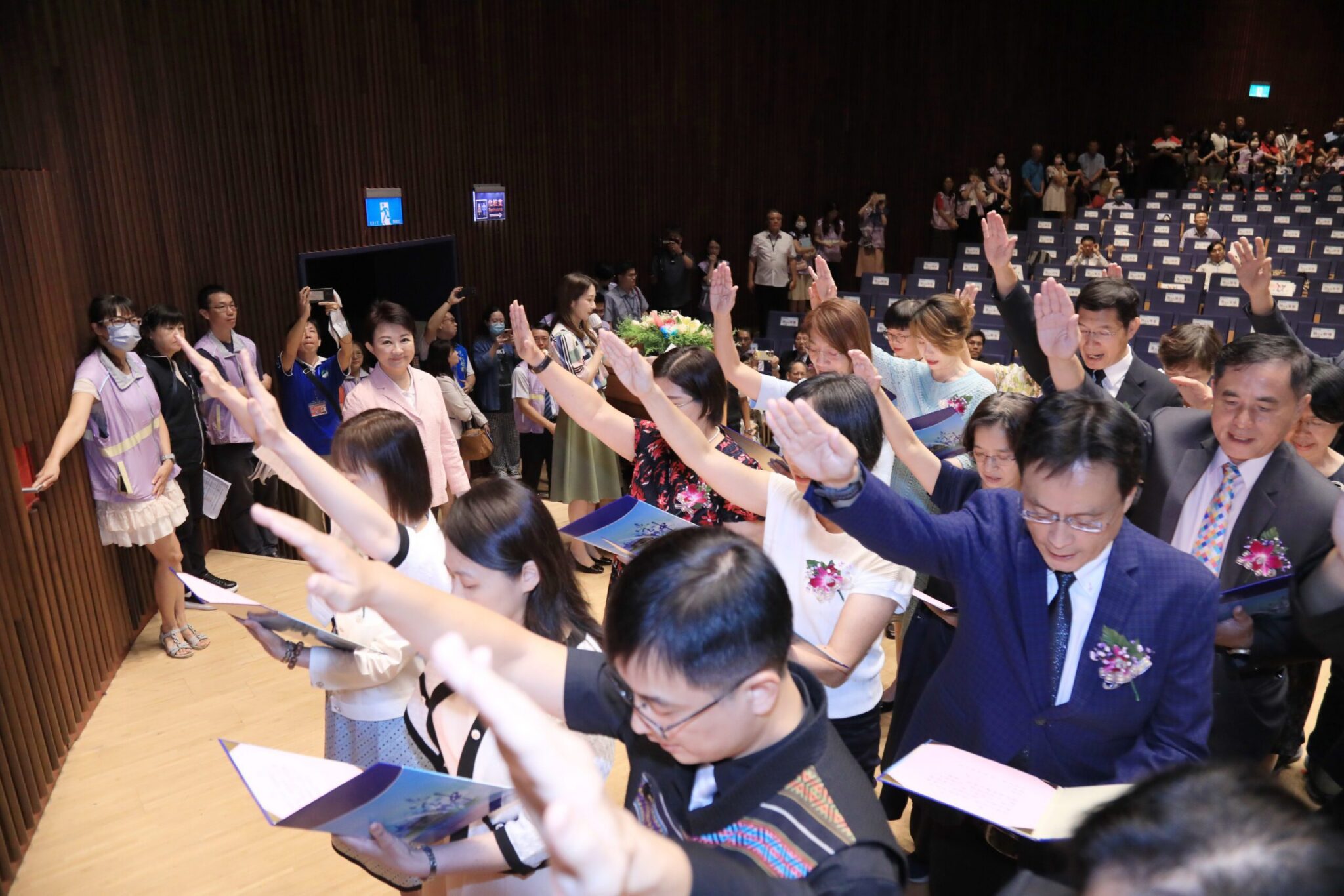今日典禮,盧市長、市議員陳廷秀、教育局長蔣偉民、主計處長林淑勤、財政局長游麗玲等均出席,期勉每位連任、調任及初任的校(園)長們,帶領學校團隊樹立優質學校經營典範,創造更好的成績。