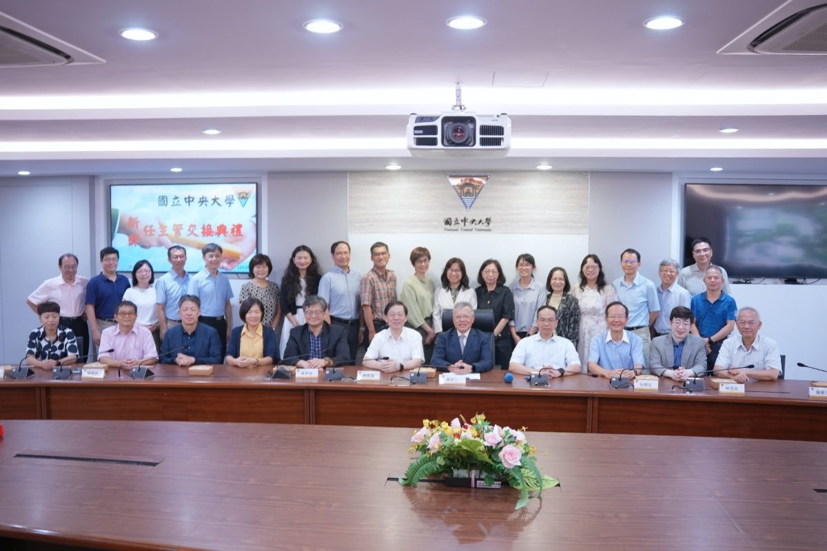 中央大學新卸任行政主管交接典禮大合照 。(中大提供)