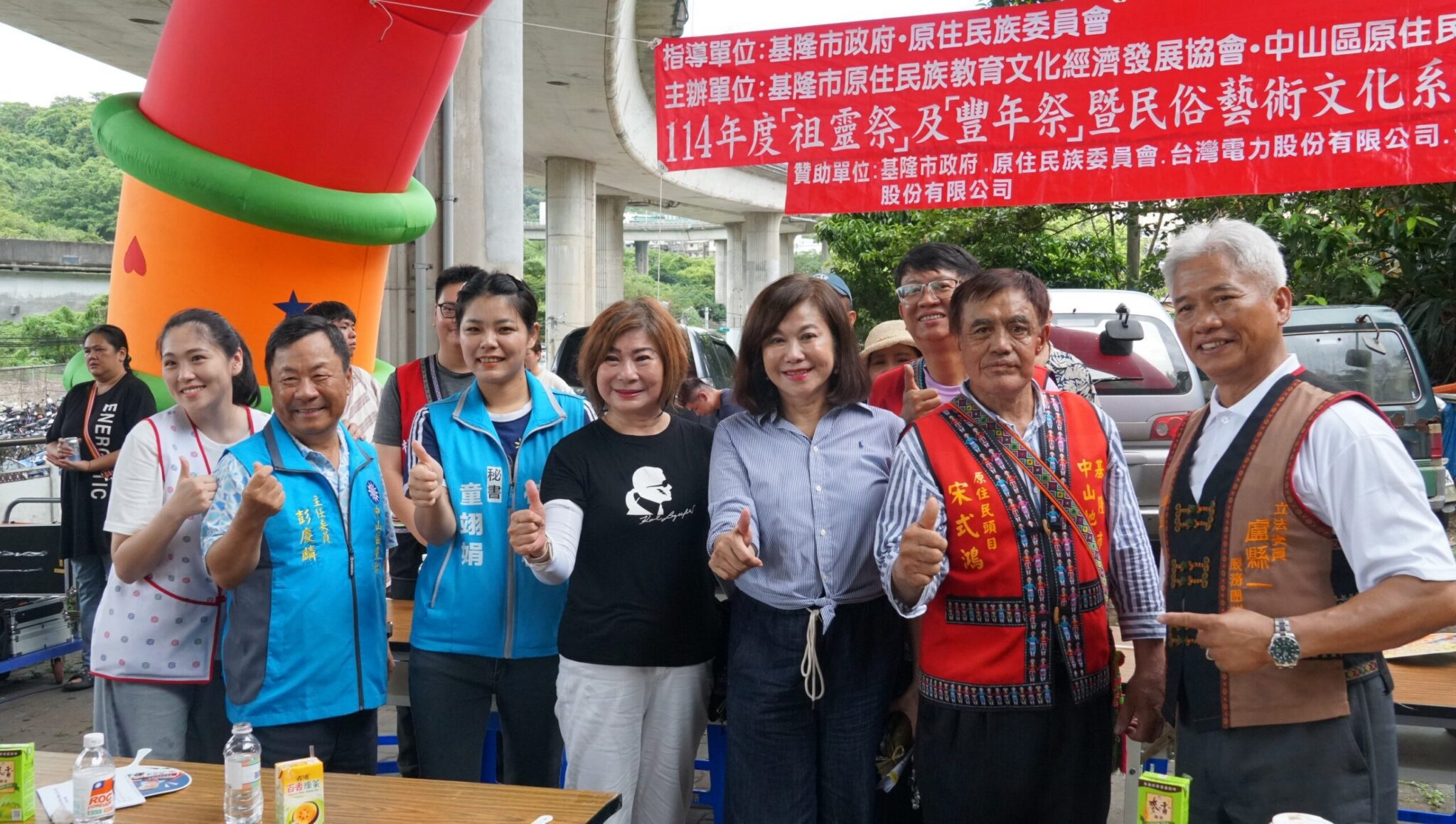 基隆市中山地區祖靈祭暨豐年祭今(2)日在協和里停車場隆重舉行,副市長邱佩琳代表市長謝國樑出席,與部落族人一同向祖靈獻上敬意,並宣布明年度將編列5千萬元預算整建原住民會館,作為族人聚會、文化推廣與活動舉辦的重要基地,期盼進一步推動原住民族文化永續傳承。