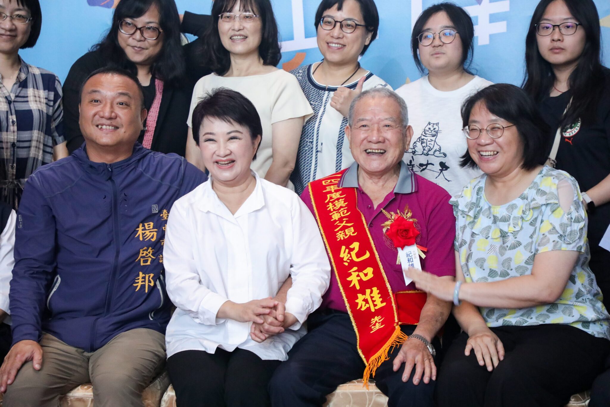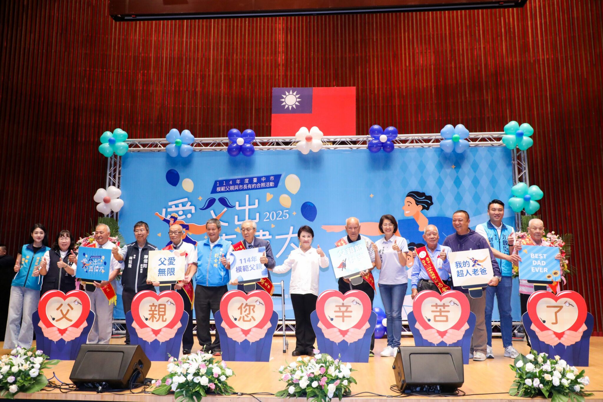 父親節即將到來,台中市今年共表揚超過700位模範父親,29個行政區陸續舉辦表揚典禮,並致贈「父德光輝」獎牌,表達最高的敬意與感謝。台中市府社會局今(2)日於市府集會堂舉辦「模範父親與市長有約」合照活動,近400位模範父親及親友約2,500人參與,其中還有2位父親高齡百歲。市長盧秀燕感謝每位父親守護家人,為家、為社會無私付出,祝福大家父親節快樂。