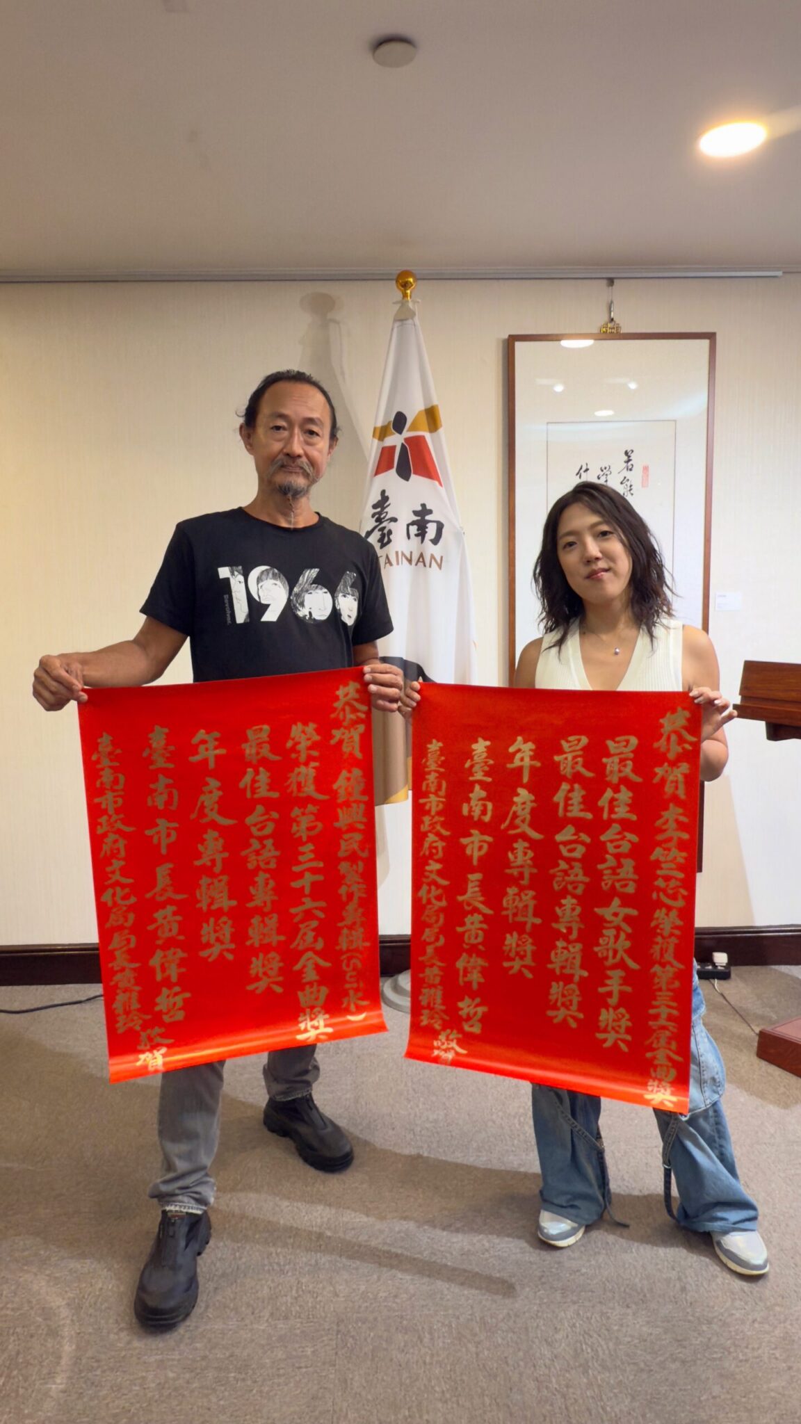 鍾興民(左)與李竺芯(右)獲台南市政府頒紅榜表揚 照片提供:宸熙娛樂