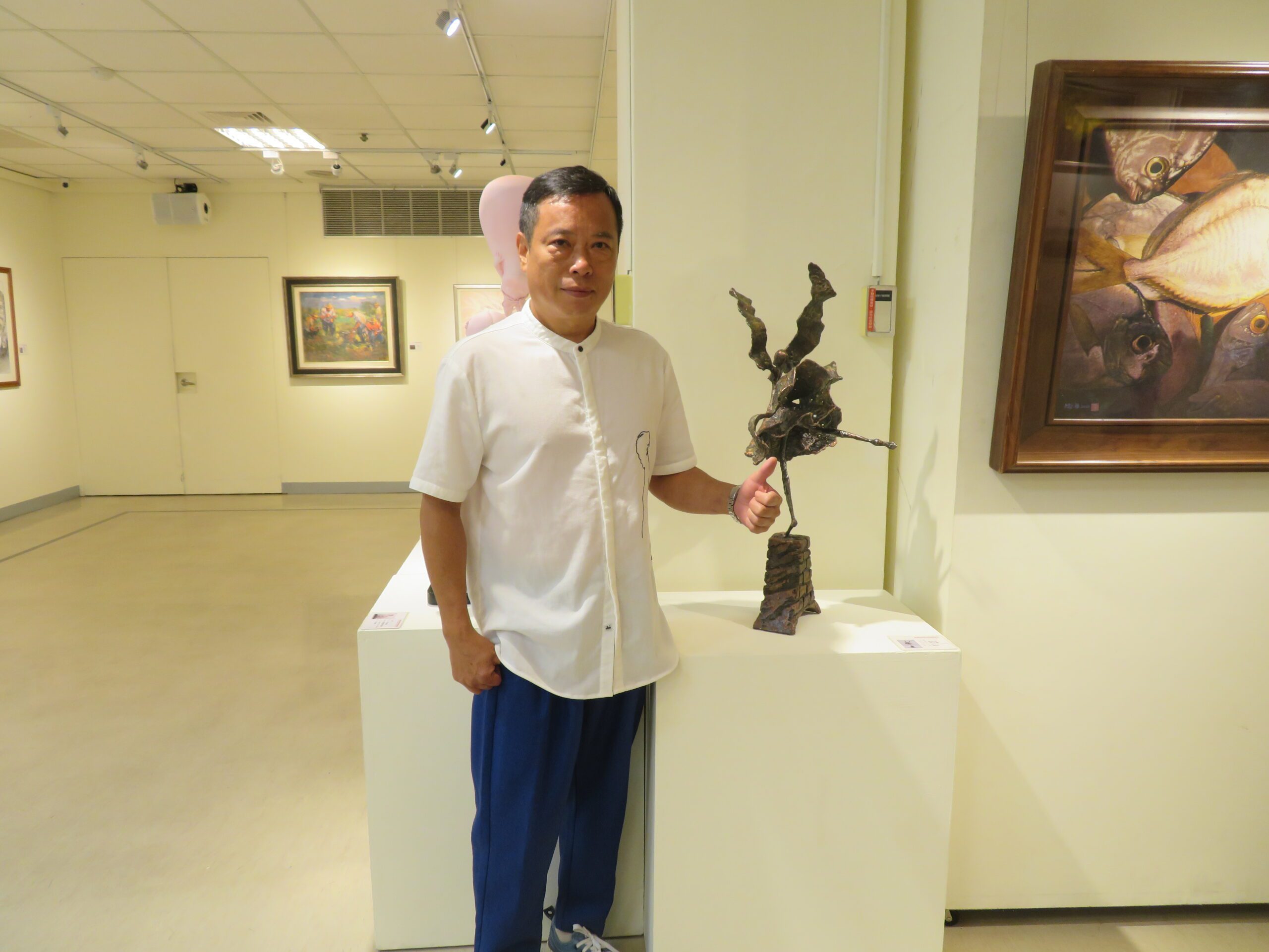 同樣獲選入展的雕塑類藝術家趙世賢曾從事汽車排氣管設計,是當時最年輕的黑手老闆,後將鋼鐵技術轉化為創作素材。其作品〈舞之韻〉以特殊的直刻手法,雕塑出舞者的優雅姿態,展現流線造型與瞬間凝結的力與美,傳遞自由奔放的生命力與積極向上的精神,也象徵力量與優雅兼具的和諧之美。
