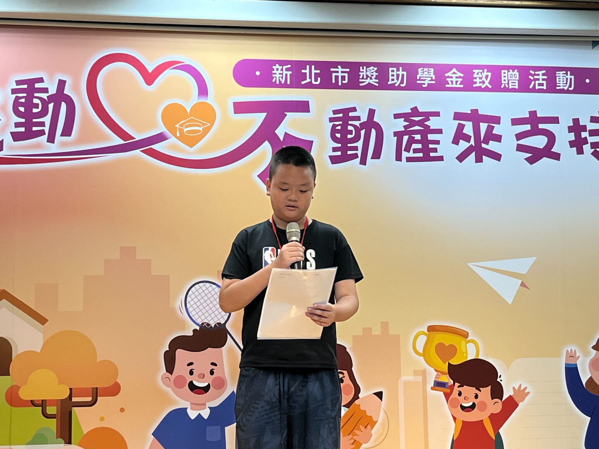 活動中邀請受助學生分享感想。來自單親低收家庭的小六生阿傑(化名)與就讀國三的哥哥由父親獨力撫養,生活雖困苦,但阿傑很貼心懂事,努力讀書、成績亮眼。他說:「爸爸常說『你們只要好好念書,爸爸會撐起這個家』,這句話我一直深深的記在心裡」。阿傑喜歡畫畫與打籃球,他說:「畫畫能讓我把想像中的世界畫出來,打球則讓我覺得很快樂。」他也期許自己快快長大,減輕爸爸的負擔,成為一個能幫助別人的人。
