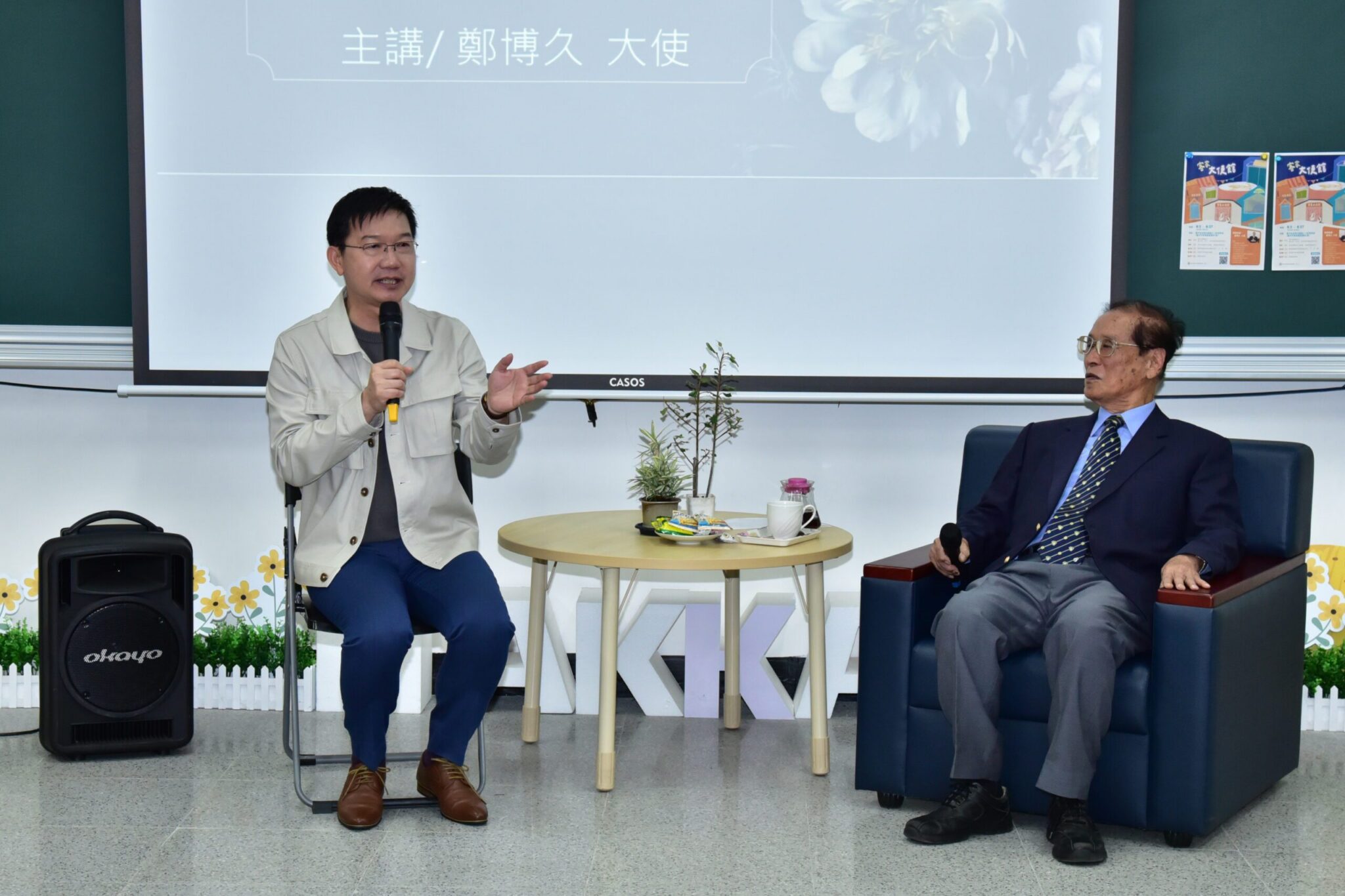 鄭大使演講幽默風趣,從小時候的生活娓娓道來,他在高雄出生,幼時身體瘦弱,祖父要他回到台中東勢的老家調養鍛鍊,兩人日常對話都使用客語,這段經歷讓他後來擔任駐外大使或代表時,靠著一口流利的客家話結識許多優秀的華僑,在海外得到意想不到的幫助。鄭大使分享了一段我國外交的艱辛歷史,包含在加勒比海地區出生入死的驚險經歷,以及中華民國退出聯合國之後,與當地國家互動的真實故事,大使表示接下來的課程會越來越精彩,歡迎大家繼續參與。
