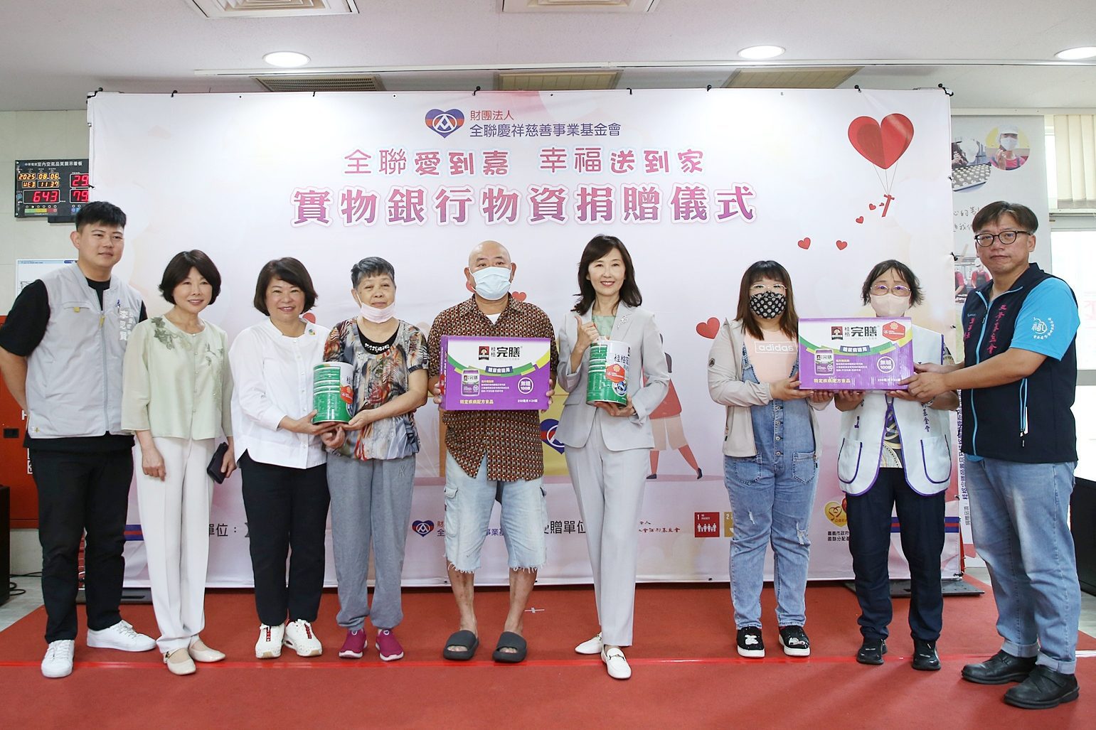 嘉義市政府今(6)日在實物銀行舉行「全聯物資捐贈儀式」,市長黃敏惠、議長陳姿妏、多位議員及全聯慶祥慈善事業基金會執行長張宜君與王李社會福利慈善事業基金會董事長張國偉到場展現民間與地方攜手關懷弱勢,感謝全聯慶祥慈善事業基金會慷慨捐贈嘉義市實物銀行120箱「桂格完膳100鉻配方」及120箱「桂格葡萄糖胺鈣奶粉」,總價值約新臺幣70萬元,為災後復原及弱勢家庭提供即時且溫暖的支持。並由腦麻協會帶來精采開場表演。
