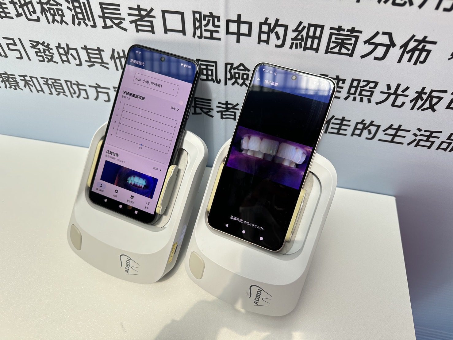 口腔照光板是利用無害的紫外光照射,能在5秒內讓牙菌斑(紅色區域)無所遁形,且無需塗抹傳統顯示劑,免除清潔困擾,未來可幫助協助掌握口腔清潔狀況,預防因口腔衛生不佳導致的感染與慢性病惡化。
