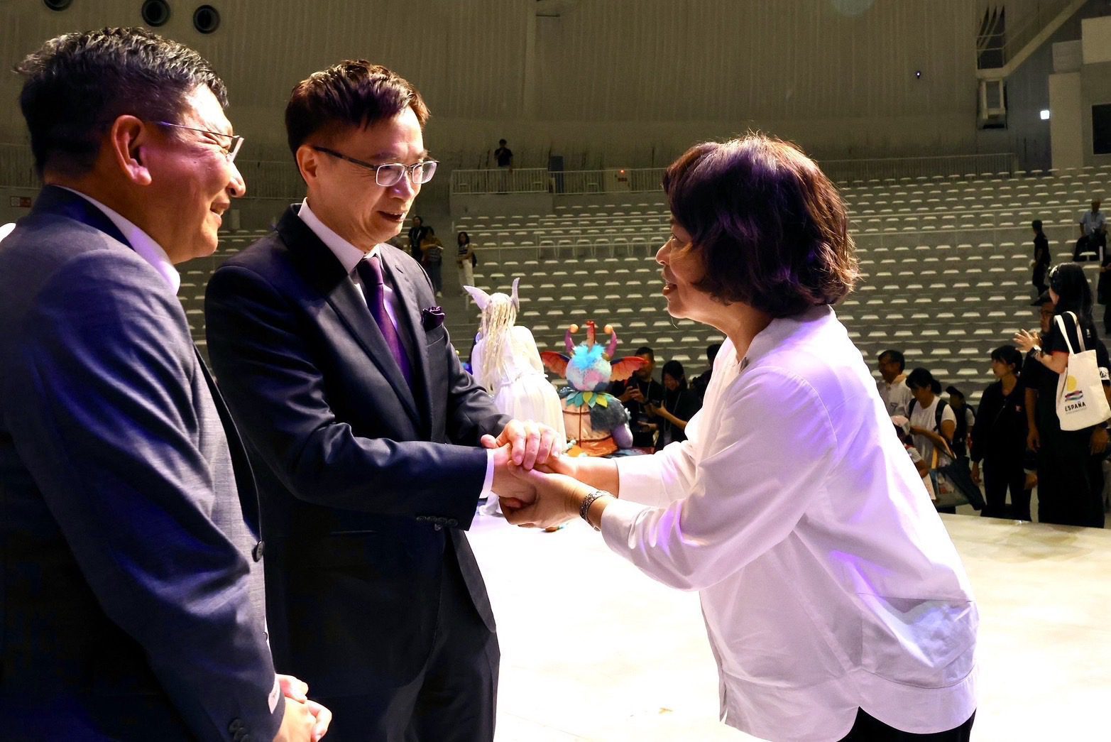 黃敏惠表示,非常榮幸能受邀觀賞舞鈴劇場為世博量身打造、於台灣館全球首演的《山海天光》,此演出融合世界獨創的扯鈴藝術、當代舞蹈、原創音樂與多媒體投影,構築出台灣島嶼地景與神話傳說交織的視覺饗宴。劇情內容不僅演出台灣「山海天光」的壯麗,引領觀眾穿越山海,探索人與自然共生的未來,更是「台灣之光」,充分展現台灣文化與科技融合的驚艷實力。