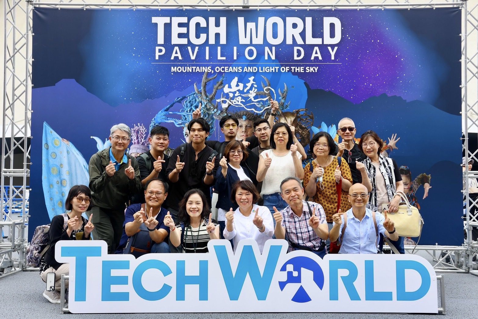 市府團隊抵達關西後,隨即前往2025年大阪世界博覽會園區,參與「TECH WORLD 台灣館」展館日活動,並欣賞由舞鈴劇場為世博量身打造、於台灣館全球首演的《山海天光》。「TECH WORLD 台灣館」由玉山數位科技株式會社策劃營運,外貿協會董事長兼玉山數位科技株式會社名譽會長黃志芳親自接待,表達對市府團隊的誠摯歡迎。