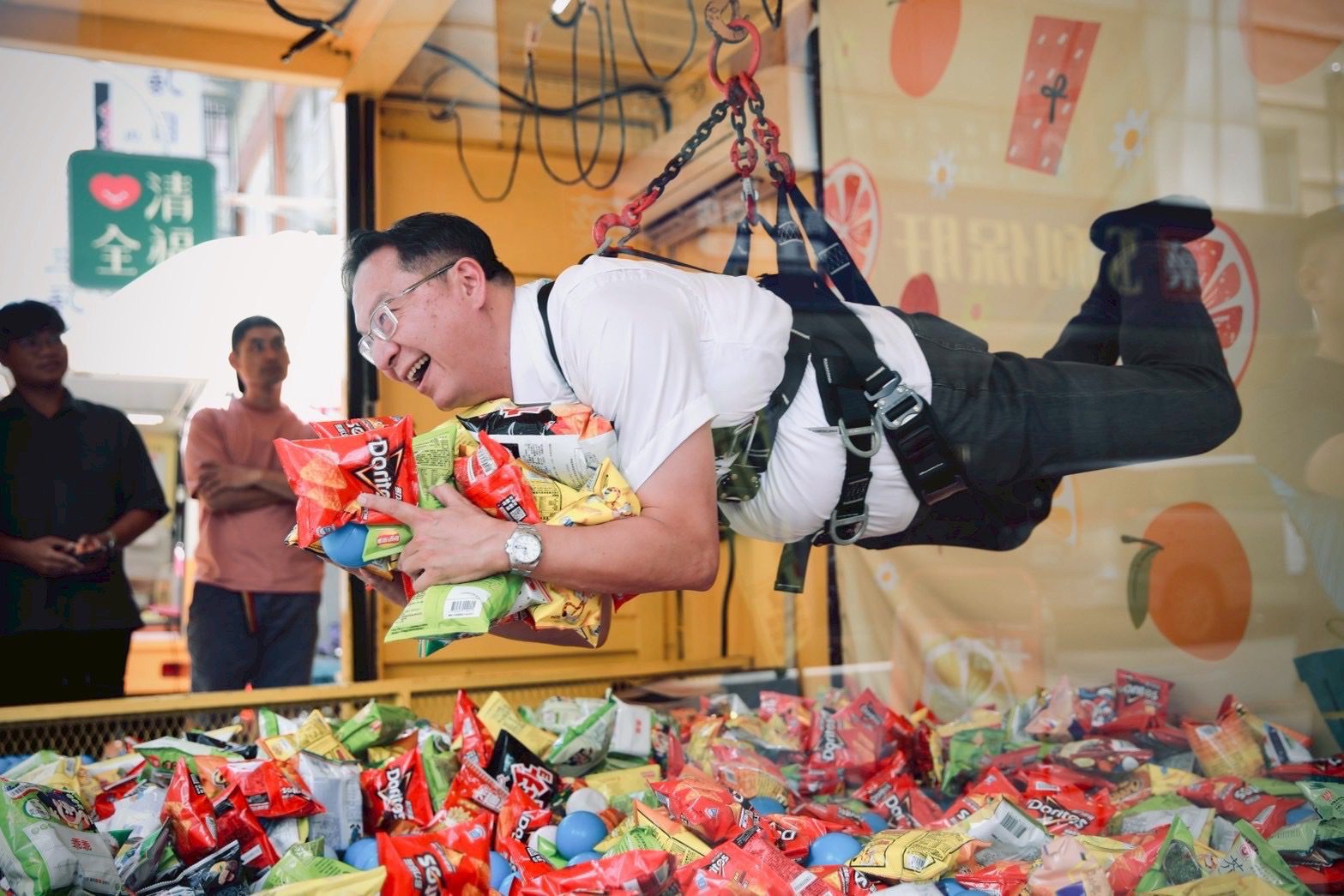 為慶祝父親節,特別設計「真人夾娃娃機」體驗,傳遞「夾住幸福,爸氣登場」的理念,吸引大小朋友拍照打卡,成為現場趣味亮點。