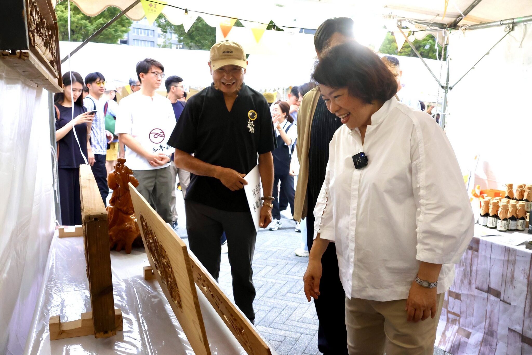 黃敏惠不僅到訪市集為業者送上滿滿鼓勵,更吸引滿滿人潮,不少來到嘉義市攤位的日本旅客都意外能見到市長本人為在地品牌助陣。文化部政務次長王時思、中華文化總會副秘書長黃竫蕙、展覽部主任黃祥安也都到場為嘉市業者送上鼓勵。