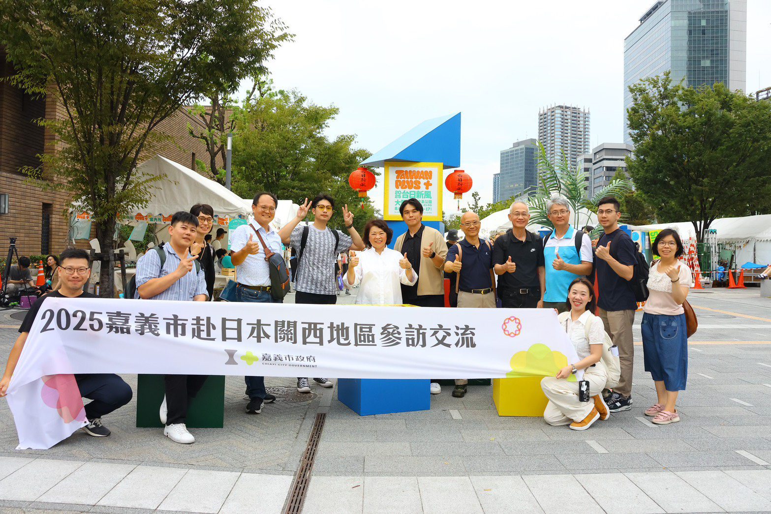 隨後,市府團隊轉往中之島參與「TAIWAN PLUS 2025 台日新風市集」,活動以臺灣夜市文化為靈感,集結近百組音樂、設計、工藝與美食品牌,展現臺日文化創意交流的成果。嘉義市更受邀於「嘉義百選」展區設攤,由8組代表嘉義工藝與飲食文化的品牌參與,包括:陳佐民木雕工作室、手半屋、嘉義城隍廟、湯城鵝行、義興嘉釀、里響咖啡、奮起福米餅、林聰明沙鍋魚頭等,共同呈現阿里山腳下的匠心精神與風味生活。