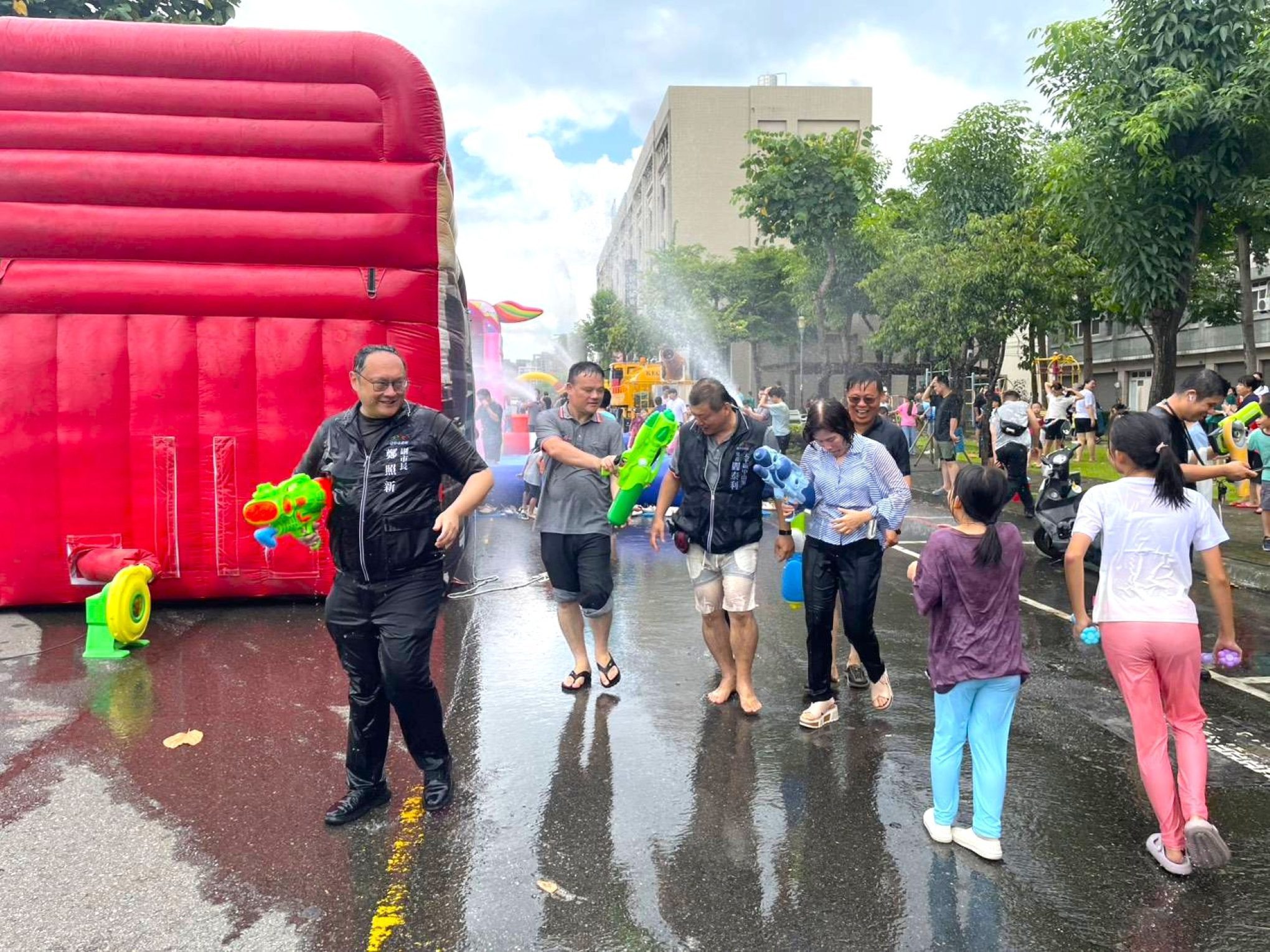 鄭副市長表示,感謝中山里長閻泰利多年來持續舉辦兼具消暑與親子互動的潑水節活動,讓民眾在炎炎夏日中盡享清涼與歡笑,同時還能逛美食市集、歡度愉快的週末親子時光。他也感謝各位里鄰長、議員及市府團隊的齊心協力,近日豪雨曾造成太平部分道路中斷,幸賴大家即時通報,市府團隊迅速搶修,交通才得以及時恢復順暢。