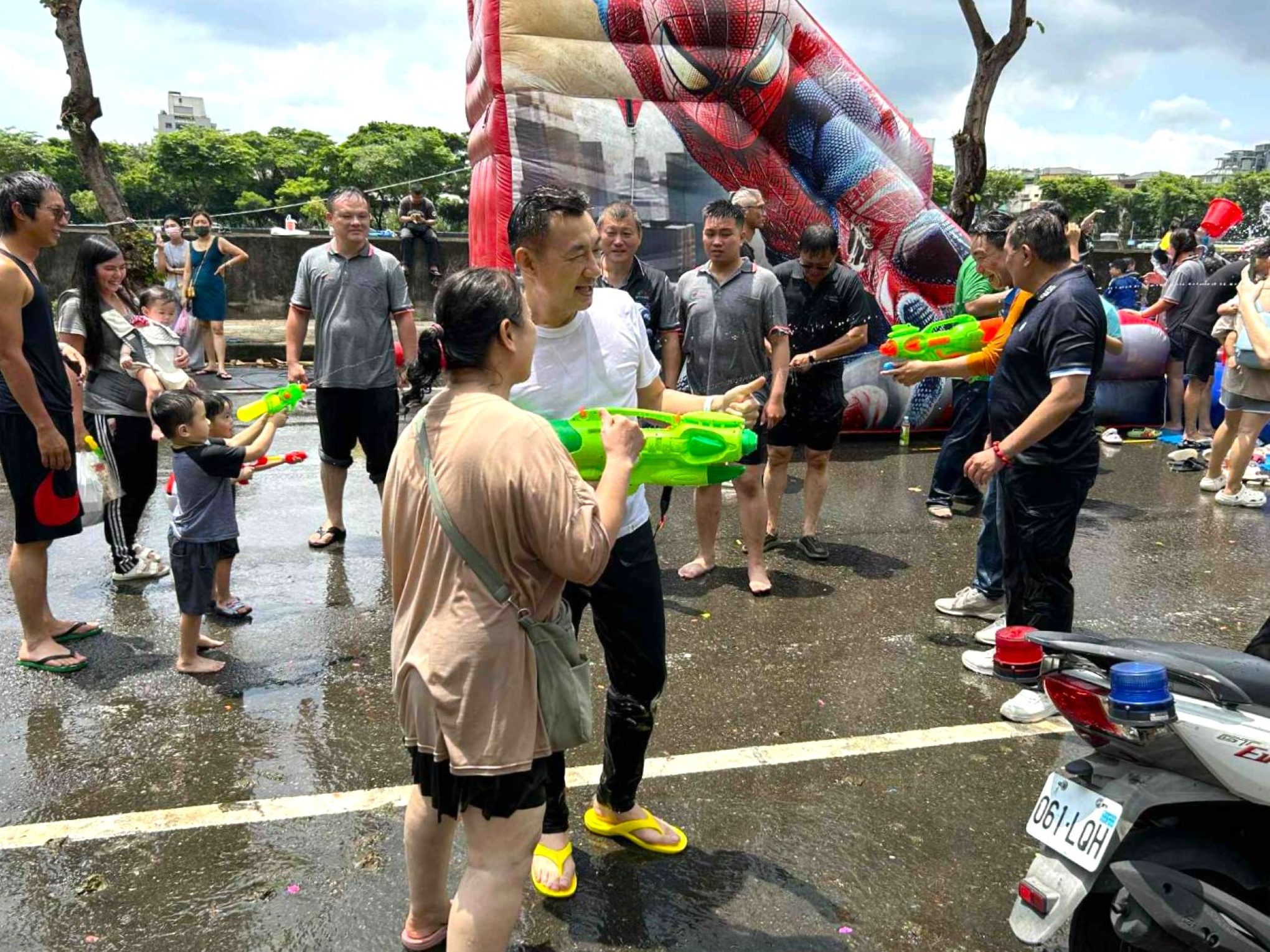 台中市太平區公所及中山里辦公處今(10)日在環太東路福德公園旁共同舉辦太平潑水節活動,吸引眾多親子到場嬉戲狂歡,沁涼水柱從四面八方襲來,讓眾人直呼過癮。副市長鄭照新代表市長盧秀燕出席與民眾同樂並表示,太平潑水節已邁入第15屆,除慰勞父親終年辛勞,並傳達對新住民的重視與關懷,每年參加人數不斷攀升,已成為當地的重要慶典,感謝太平公所及中山里長閻泰利齊力推廣,促進多元文化融合。