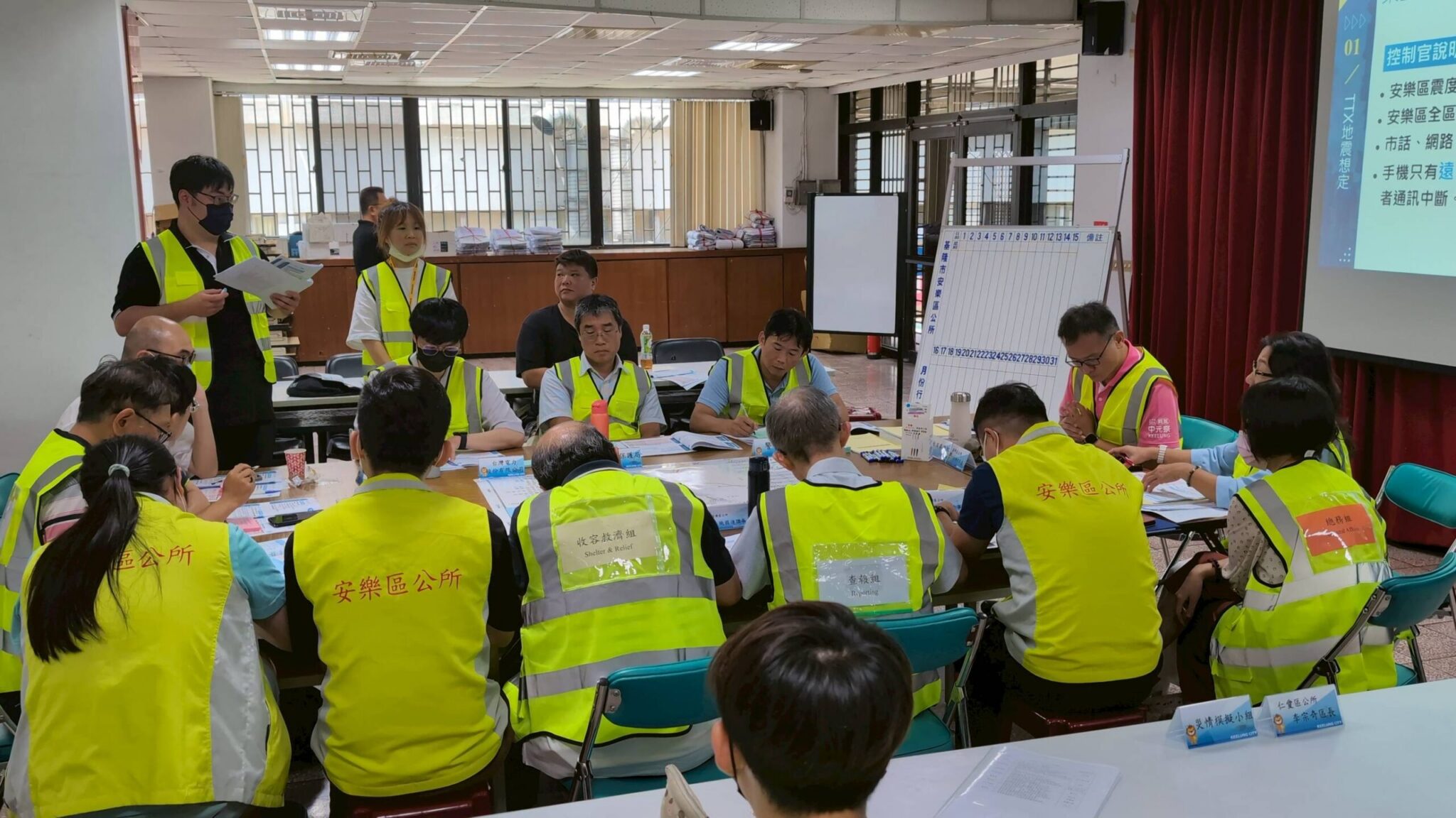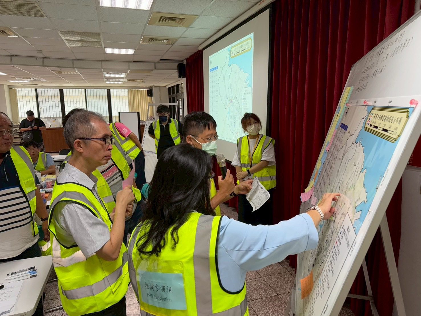 演練小組分為推演指揮組、控制組、災情模擬組、評核組與參演組,模擬災後首日6小時內的初期應變行動,包括啟動區公所應變中心、封鎖危險區域、設置臨時指揮據點、盤點通訊與發電設備、開設安置所及物資調撥,並針對需氧患者、臥床者及兒少進行分類安置。