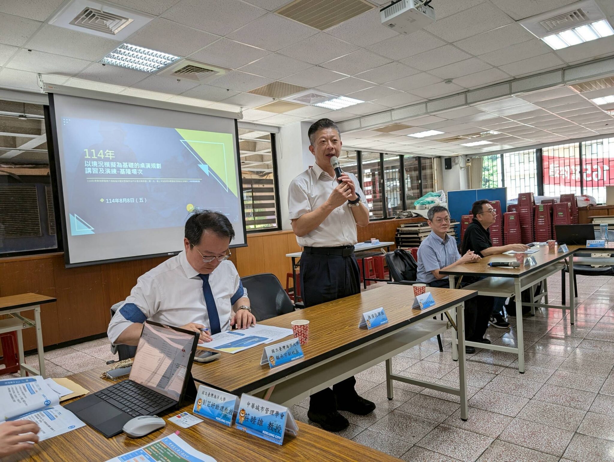 為強化大規模地震的災害應變與跨單位協作能力,基隆市消防局於8月8日在安樂區公所二樓禮堂,舉辦「114年度直轄市縣市以境況模擬為基礎之操作演練」,為年度縣市演練的第一場。內政部消防署王志鵬科長、中央強韌臺灣計畫協力團隊單信瑜教授、助理黃姿瑄蒞臨指導。
