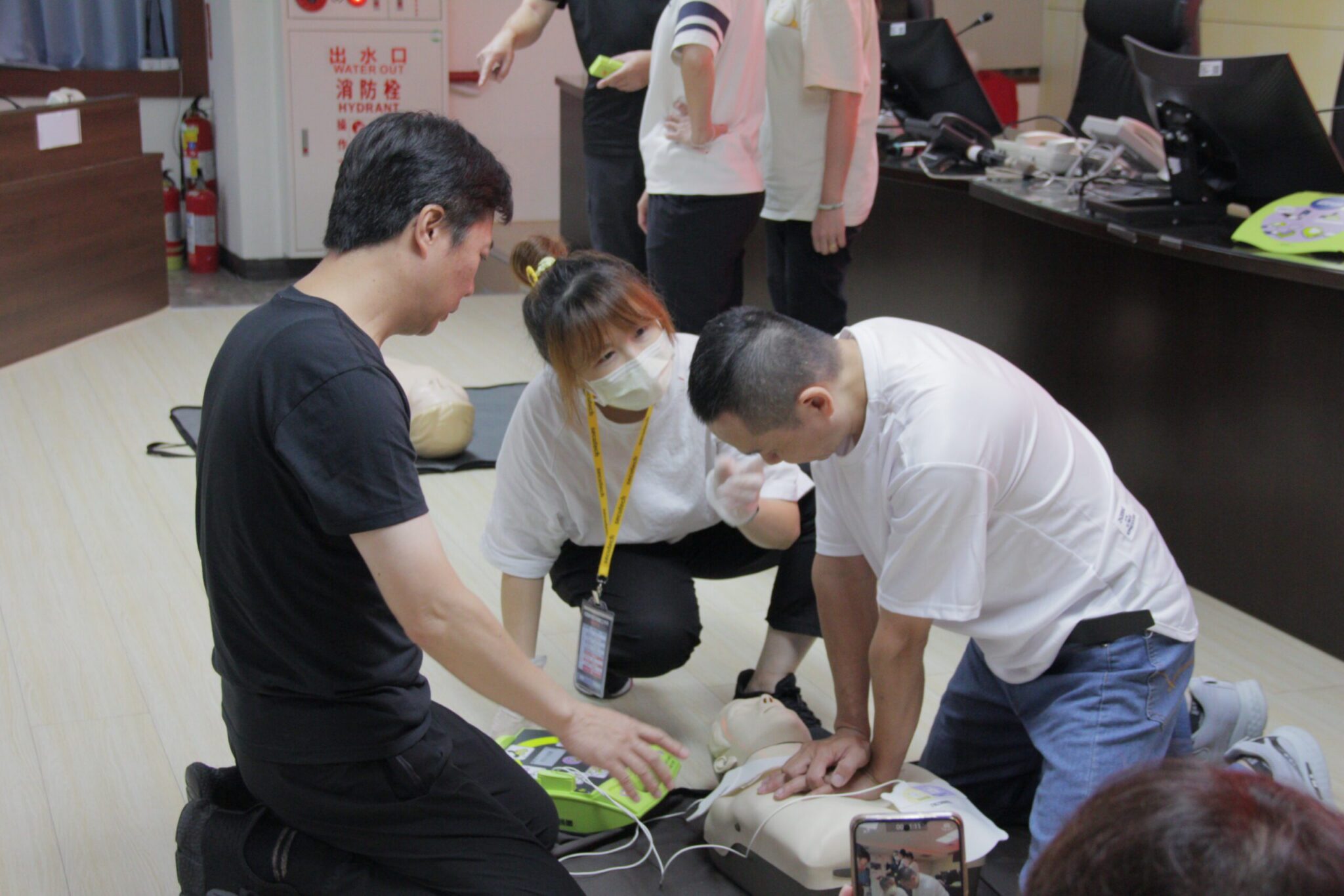 本次課程邀請多位專業講師授課,由強韌台灣劉芷妤教授分享近年災害特性、防災士任務與社區防災資訊管理。救護教官曾慶祥與EMTP助教周佳慧,帶領學員實作 CPR 與 AED 操作,當身邊有人因心肌梗塞等緊急狀況中,及時給予正確的急救處置可以在關鍵時刻救人一命!
