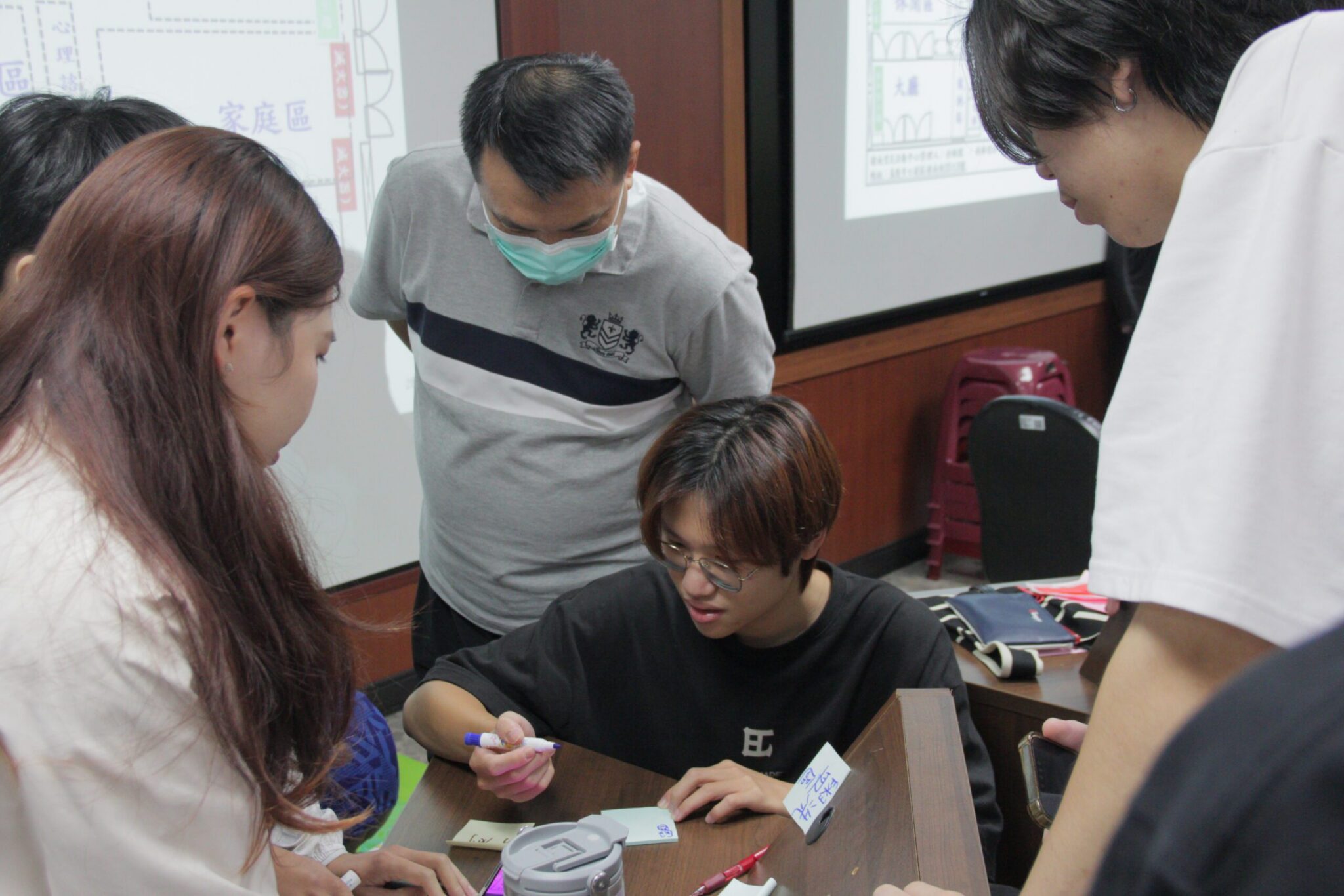 洪志評教授引導學員進行防災計畫與避難收容情境演練,當大規模災害需要開設收容所時,對於收容所的環境規劃、災民可能會遇到的問題,現場的寵物區、心理諮商區等需求,讓學員在討論中建立完整的應變思維。