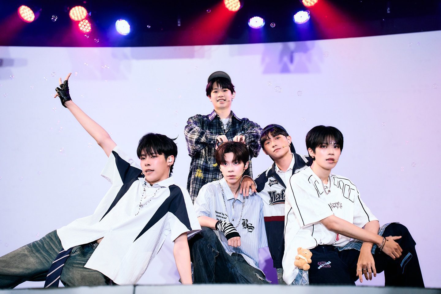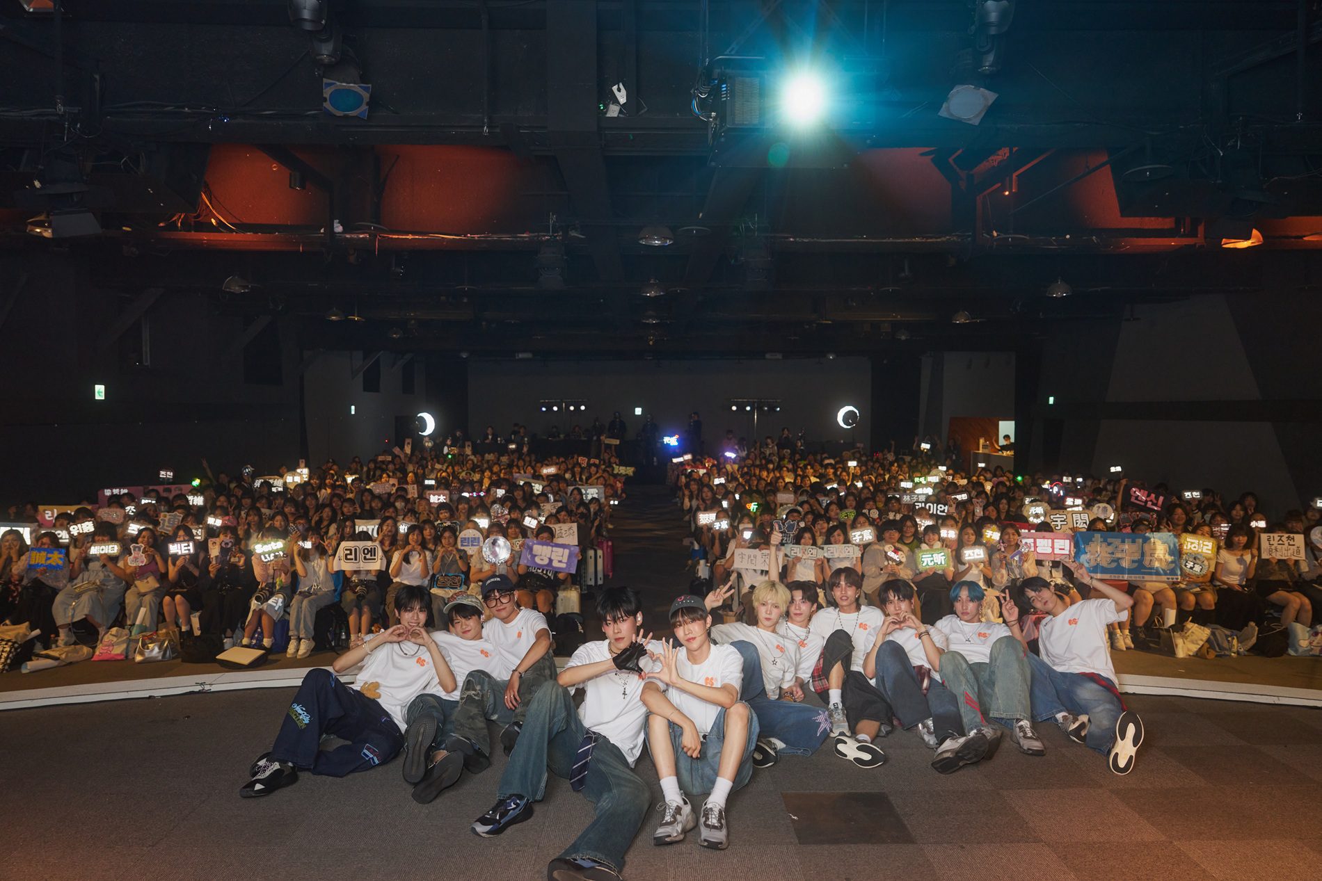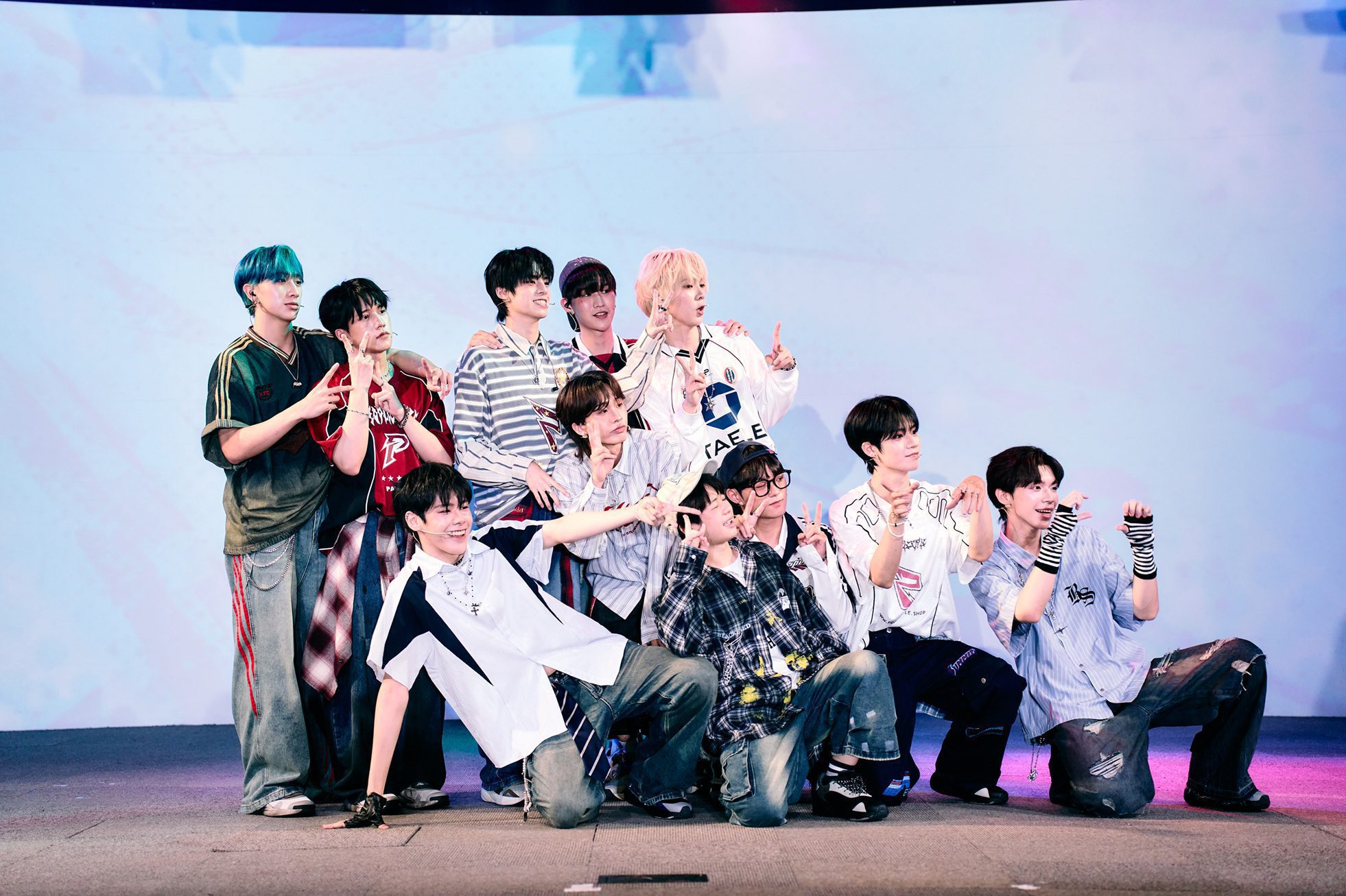 而不僅總決賽場景如畢業典禮般離情依依令眾人催淚,當中一段串場的神祕應援影片更逼出每位選手的男兒淚,原來主辦單位天空娛樂特別在事前蒐集了11位選手親友的祝福,當螢幕上出現家人、朋友們鼓勵與祝福,那些平時不敢說出口的話語,在這一刻成為最溫柔的力量,而選手們看著熟悉的臉龐與聲音,眼淚止不住地流下,不只是感動,更是夢想背後最真實的情感支撐!有趣的是成員們下台跟粉絲們互動時,以第五名出道的萊恩突然熱情地緊抱著一位女性,令工作人員非常緊張,結果後來才發現原來是萊恩的阿嬤也到場力挺,萊恩興奮大喊介紹給粉絲認識:「這是我阿嬤!」