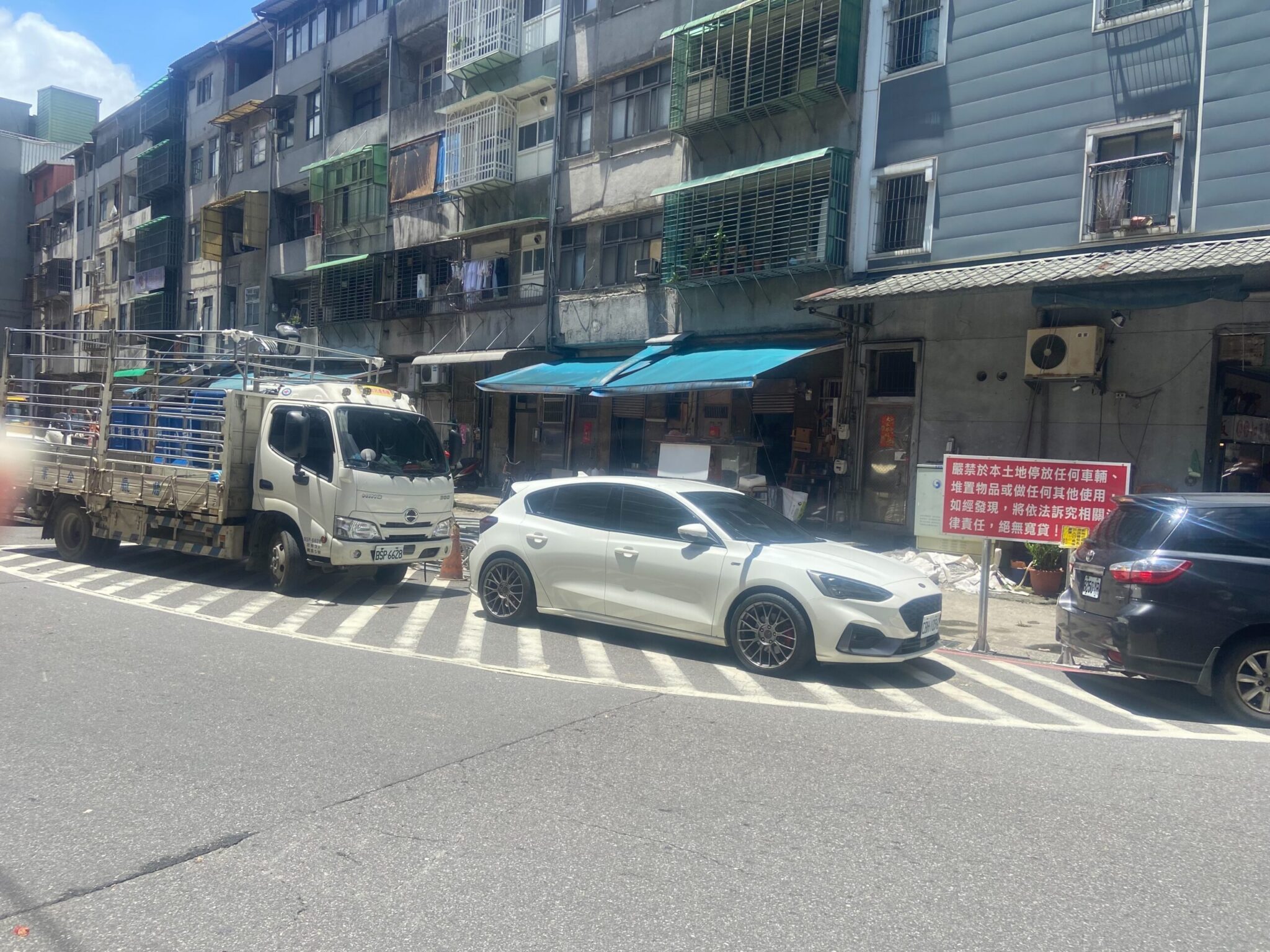 因看板係臨時展演性設施,未經申請搭設,已影響公共安全,後續將依相關規定裁處。