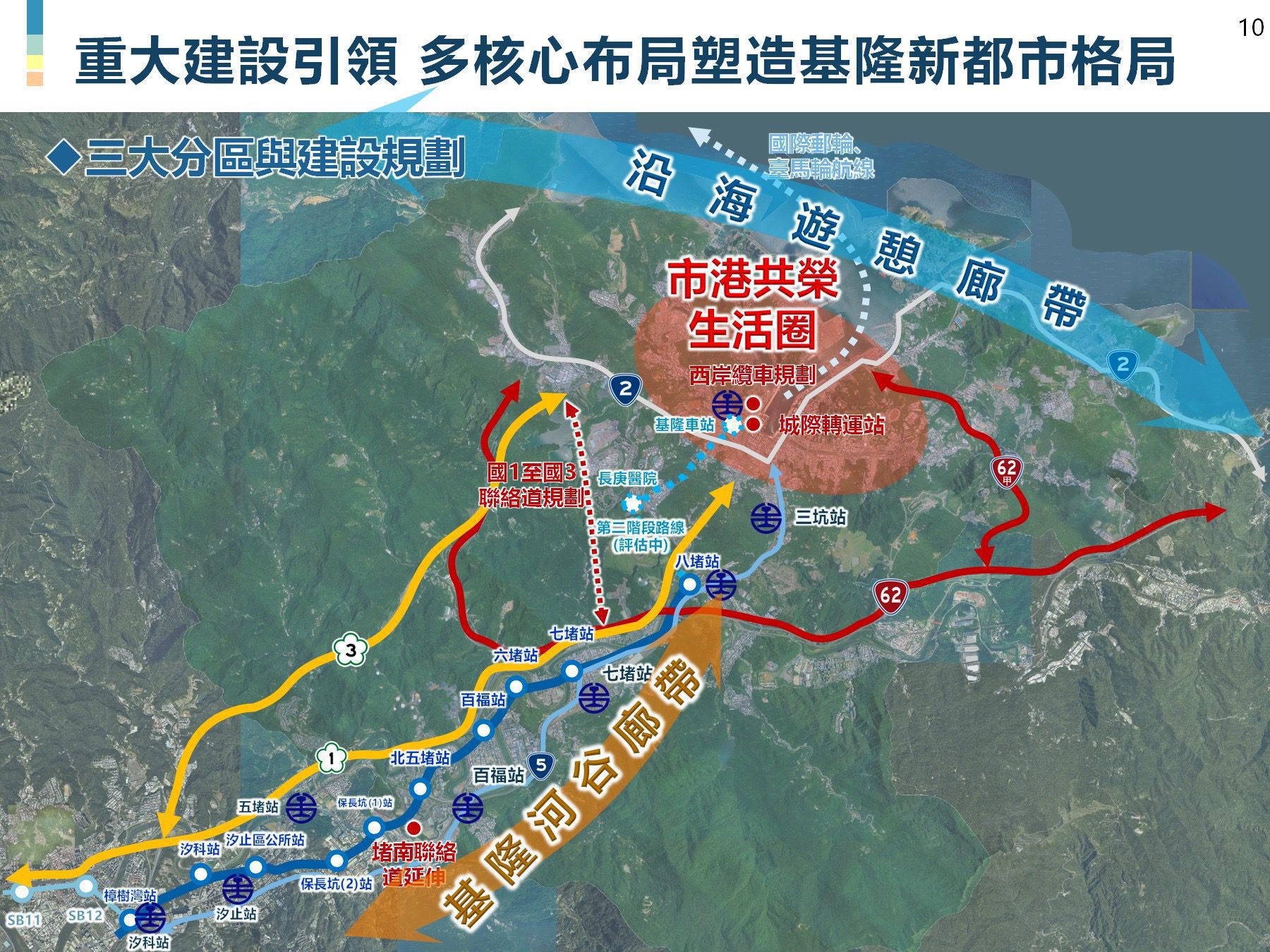 都市發展處處長謝孝昆表示,基隆捷運建設正全速推進,市府已同步啟動沿線場站開發與產業布局,捷運不僅是交通建設,更是推動城市升級與提升生活品質的關鍵引擎,相關都市計畫檢討與產業布局工作已全面展開,並於今年6月舉辦都市發展與產業論壇,向外界說明基隆捷運沿線廊帶重大建設與招商計畫,廣邀產官學界共同規劃發展藍圖;7月則安排都市計畫委員實地勘查沿線整體開發區的產業布局與都市機能配置,為後續都市審議與招商作準備。