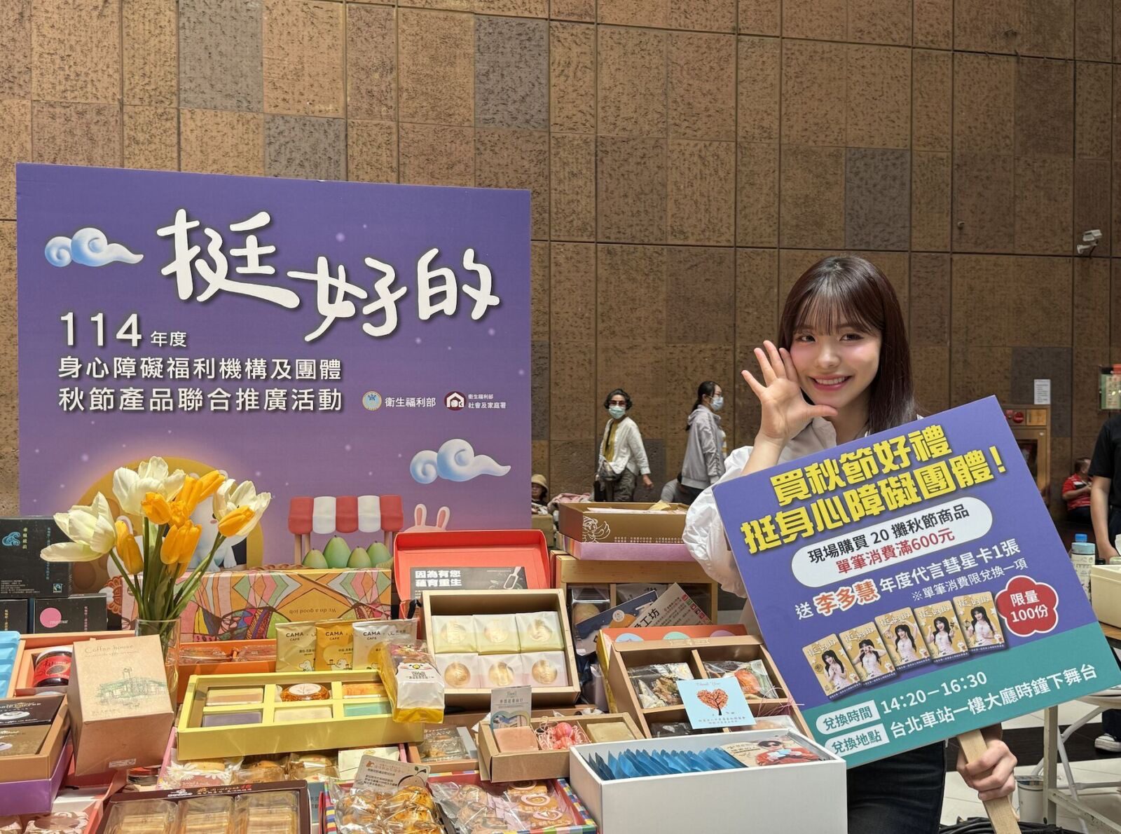 衛福部15日下午在台北車站一樓大廳舉辦身心障礙福利機構及團體秋節產品聯合推廣展售活動,現場有全台20家身心障礙福利機構及團體展售禮盒,呼籲民眾以實質行動力支持全國身心障礙福利機構及團體,送禮也做公益。