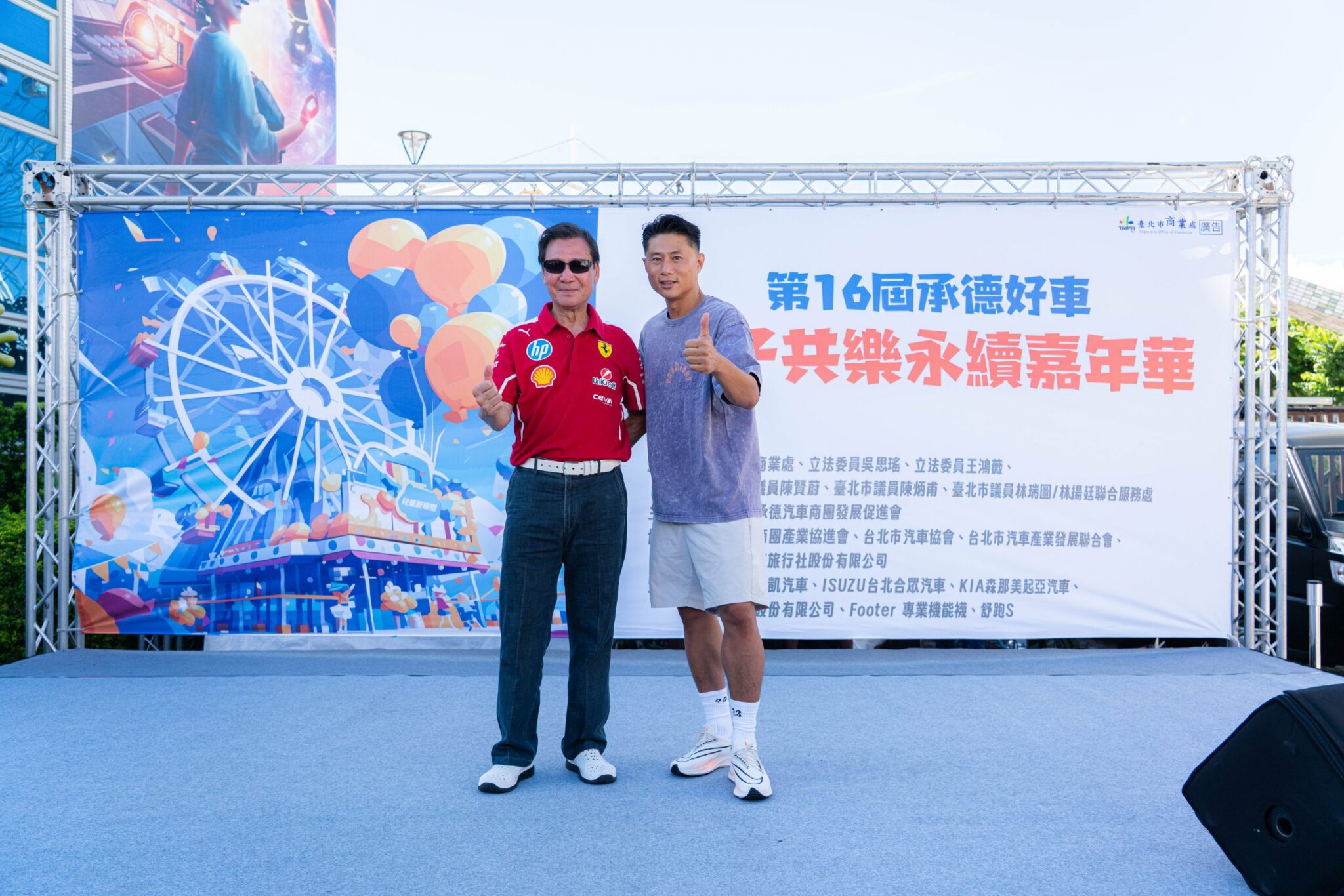 (左起)承德汽車理事長李寶星、藝人彭小刀擔任開幕場嘉賓。(圖:台北市承德汽車商圈發展促進會)