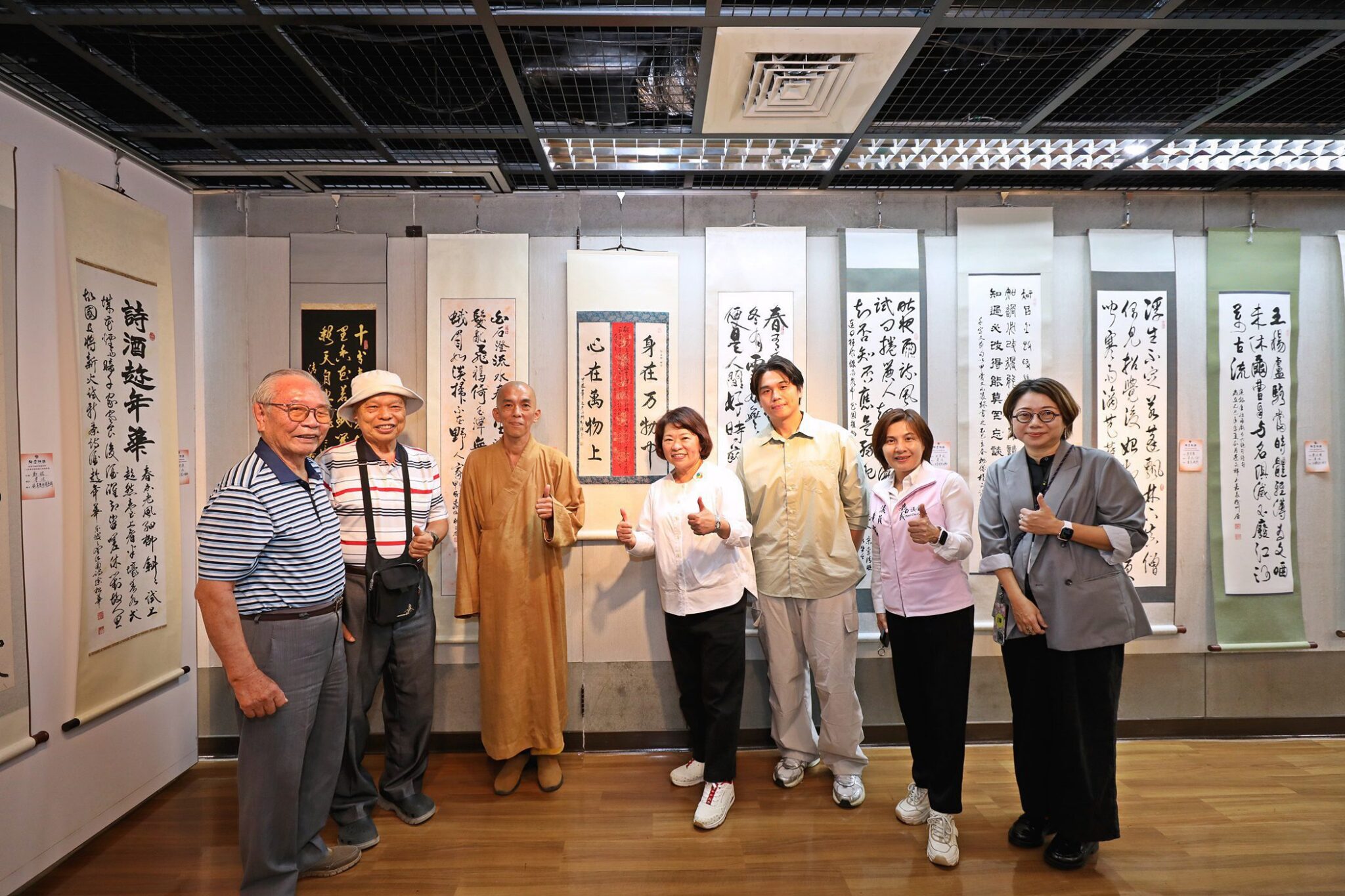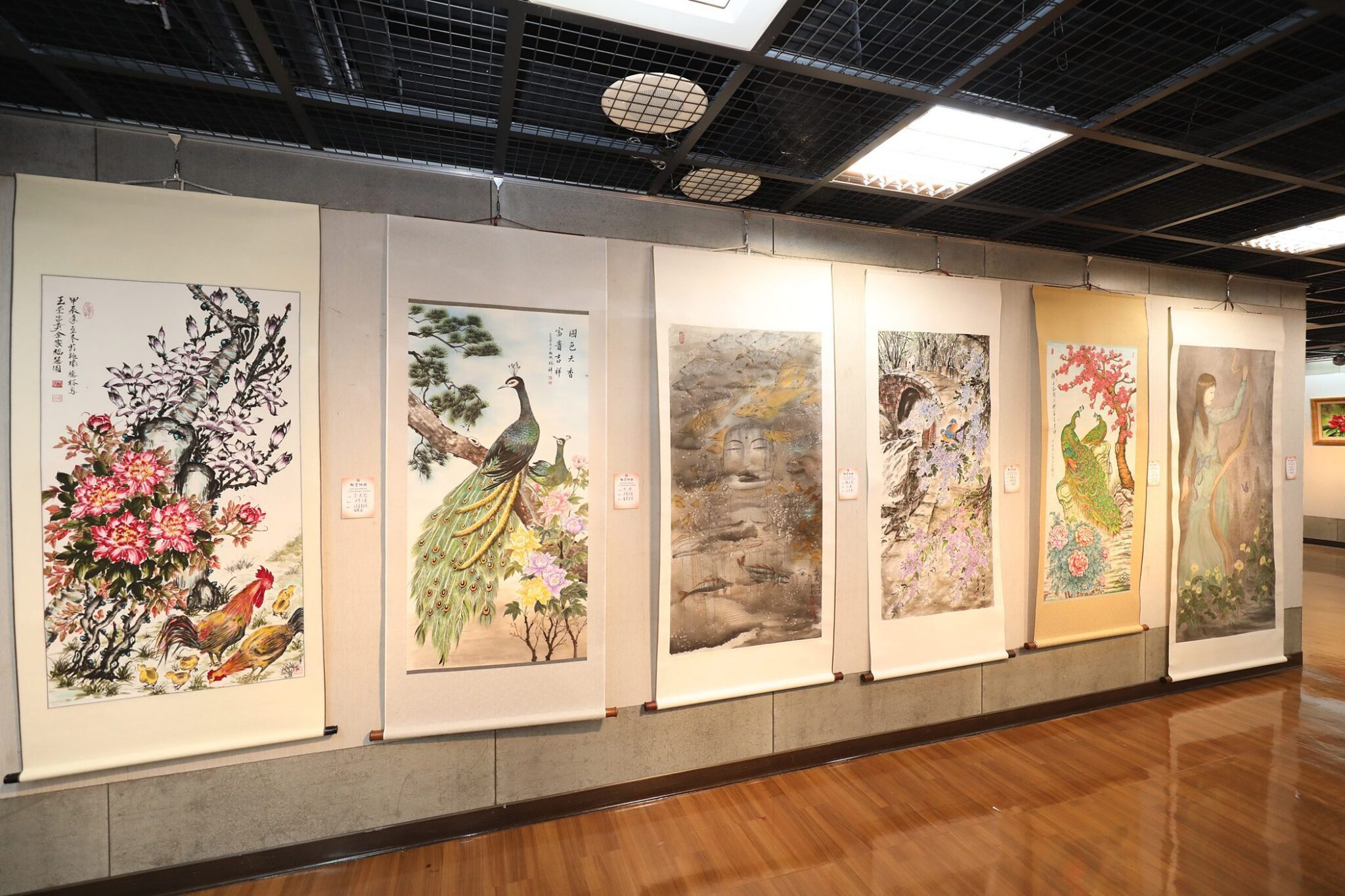 展出作品涵蓋書法、繪畫與陶藝等多元媒材:書法部分網羅篆、隸、楷、行、草及榜書等書體,筆力蒼勁、風格多元,各展其長;繪畫作品則涵蓋水墨、彩墨、工筆、油畫與絲畫等形式,兼容傳統與當代觀點,呈現豐富的視覺語言;陶藝創作亦融入書畫精神,形式別具、意涵深遠,充分體現台灣藝術創作者對文化精神的堅持與創新。