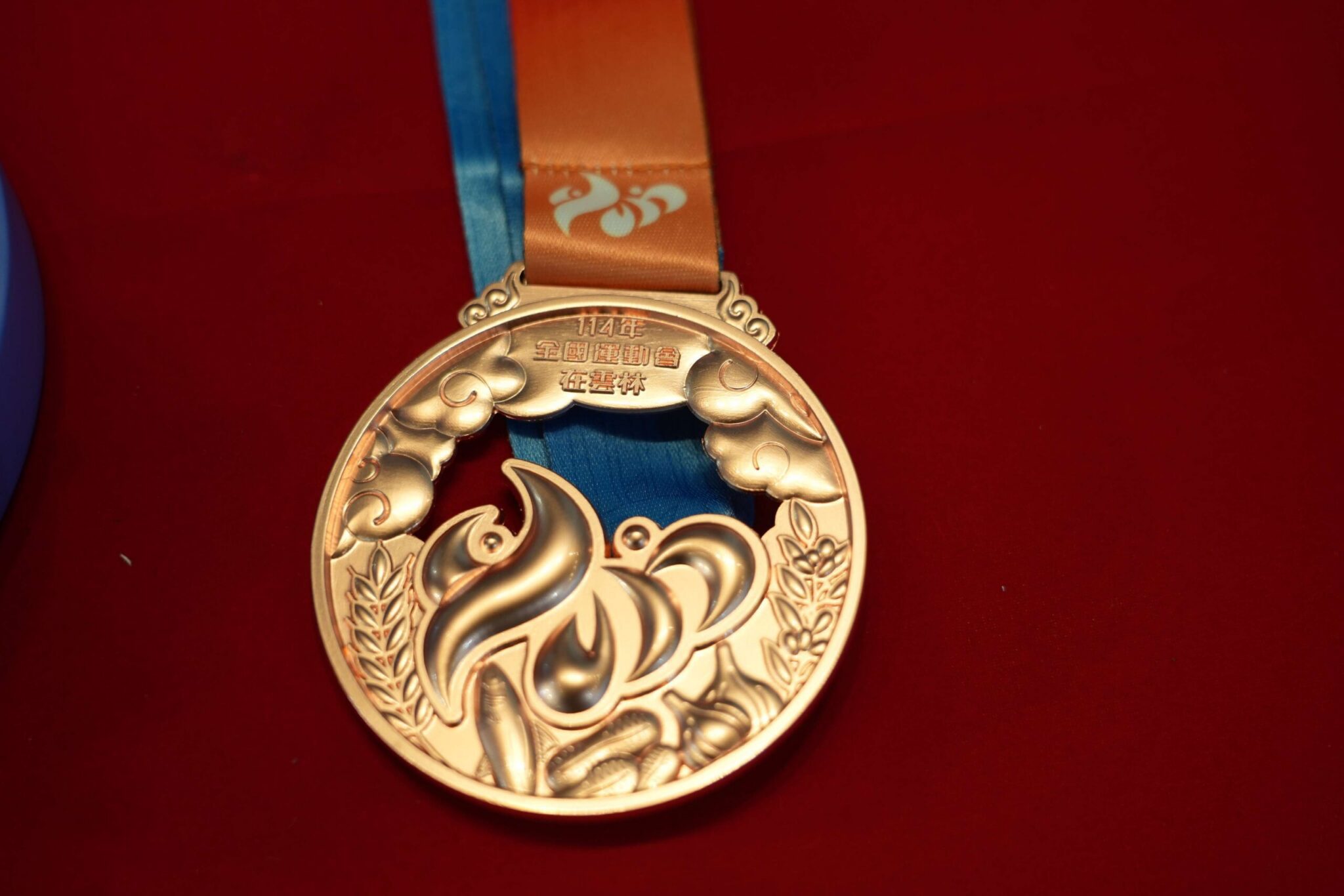 她說,獎牌設計以「雲為天、糧為地」為設計主軸,圖騰融入雲林地圖、祥雲與稻穀意象,傳達雲林物產豐饒是台灣糧倉,人民具備不屈不饒的運動家精神,世代為家鄉努力,讓榮耀綿延。而中央簍空的雲林地圖設計,象徵選手於雲林參賽,在競技場上爭取最高榮耀,展現「稻浪飄香 載夢而行」的意境,傳遞「榮耀共襄、萬象更新」的精神。