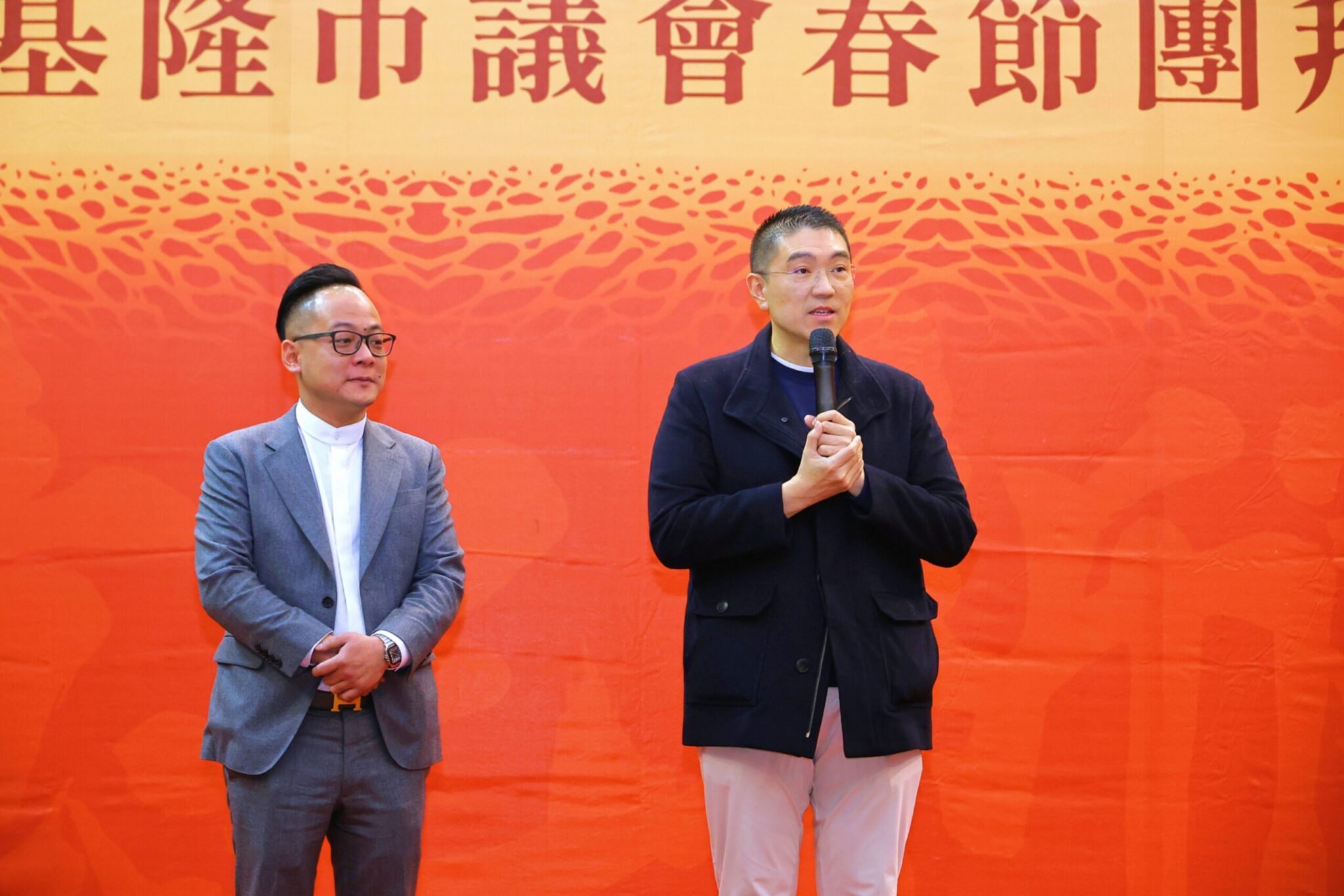 基隆市議會議長童子瑋則表示,感謝市府及議會同仁的付出與努力,他認為基隆捷運是未來最重要的基礎建設,期待大家能夠多聆聽市民意見,透過討論與交流激盪出更多創新想法。此外,他也勉勵市府與議會同仁在新的一年持續合作,共同打拚。