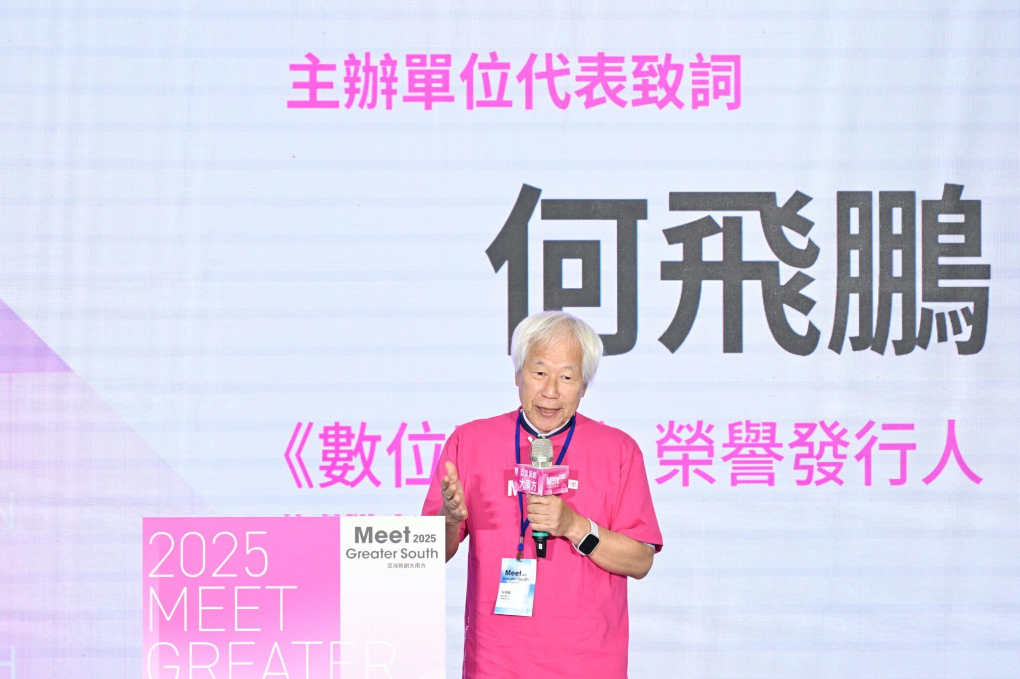 《數位時代》榮譽發行人何飛鵬致詞時則指出,高雄同時展現兩種最美的科技風景:一是台積電、輝達(NVIDIA)等已登上世界舞台的「護國神山」,二是現場300家充滿潛力的新創團隊。他強調,Meet亞灣新創大南方的核心使命,就是創造大企業與新創之間的碰撞:前者擁有資源與市場,後者帶來技術與創意,唯有互補合作,才能激盪出新的可能。「今天的一個微小合作,都可能成為改變南台灣產業樣貌的巨大能量。」他期許展會不僅是交流平台,更能為台灣創新生態注入源源不絕的動能。