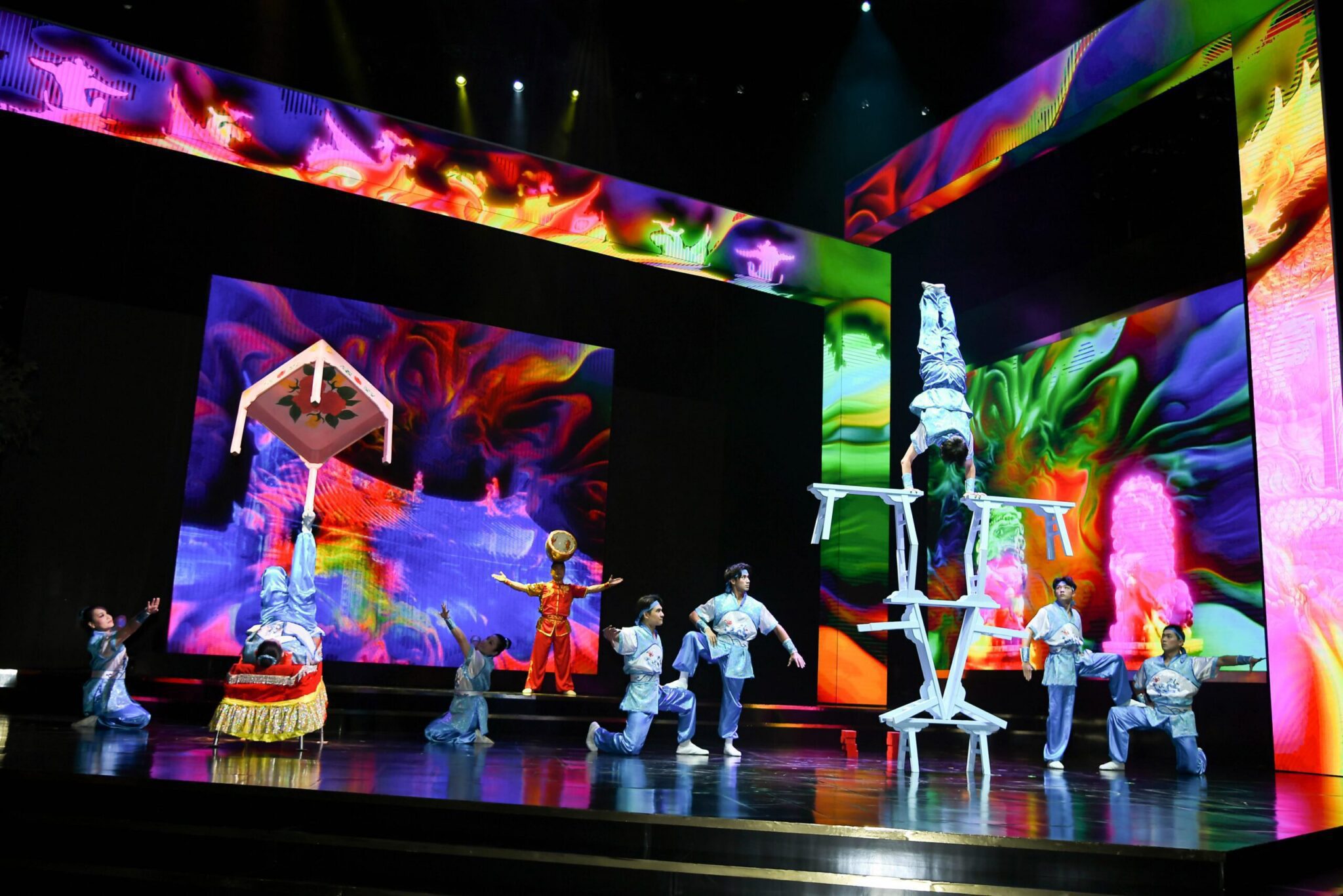 最後登場的是臺灣特技團與Hana Chen STUDIO的合作,象徵將文化與信念的傳遞。這場演出延續前一段的幕後視角,讓觀眾看見構築傳藝舞臺光彩的每一雙手。從表演者到技師,每一位臺前幕後的工作者,都是世代薪火傳承的關鍵角色,串聯過去與未來,成就「代代相傳」的文化風景。