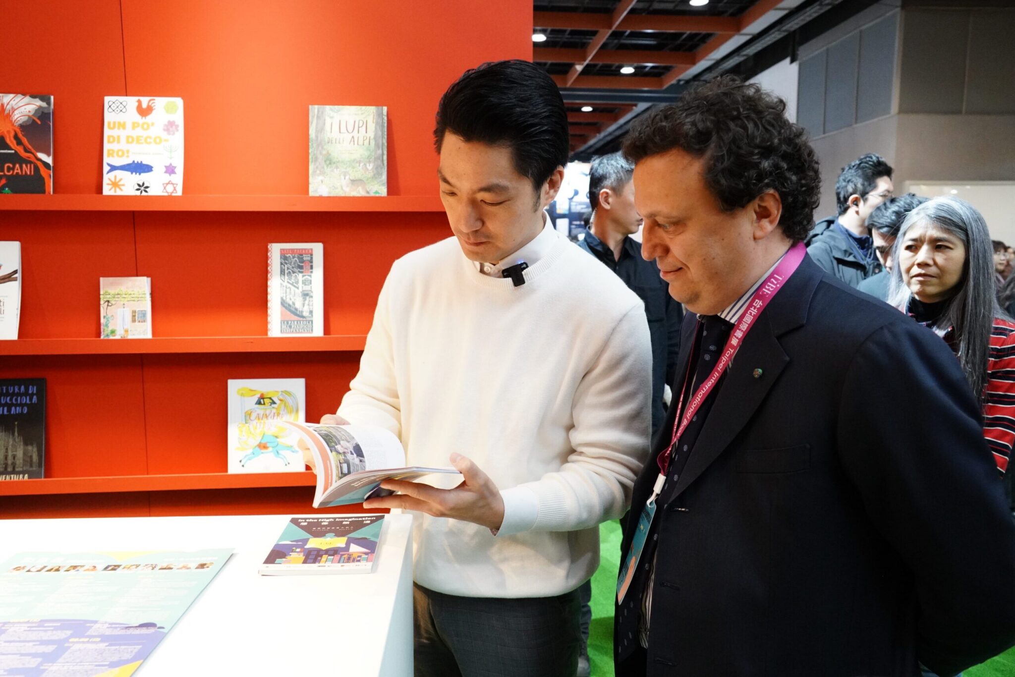 本屆書展由義大利擔任主題國,主題為「想像無邊」,期盼開啟當代義大利文化與臺北的對話,並推動出版、語言、與書籍的交流互動。蔣萬安在義大利在臺辦事處代表龍博文親自帶領下,介紹多位經典及當代的義大利創作精選書籍與圖像展覽,讓大家一起感受義大利充滿故事、多元觀點的文化魅力。