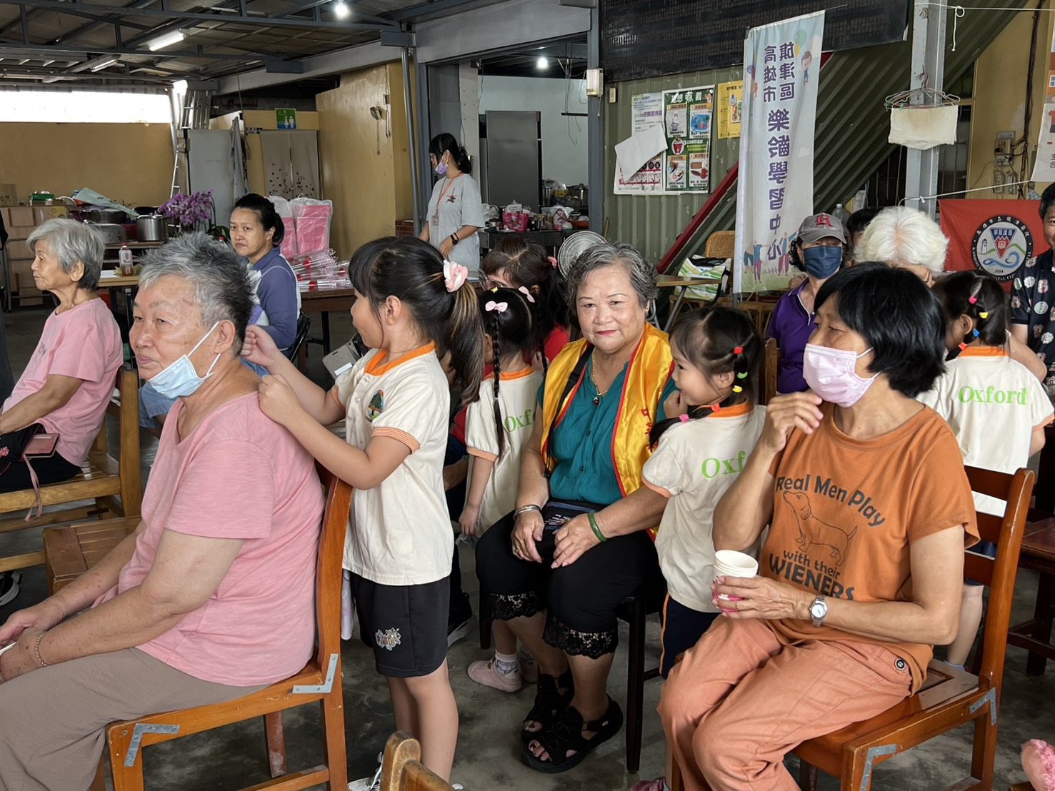 今(8/27)日活動旗津區張淑貞區長及旗津醫院蔡宜純院長都到場為活動打氣,海星幼兒園大班的小朋友,為爺爺奶奶們演奏口風琴「聽媽媽的話」,爺奶拍手唱和,開心的不得了。楊園長說孩子們知道要來社區陪爺奶過節,認真練習要展現最好的一面。