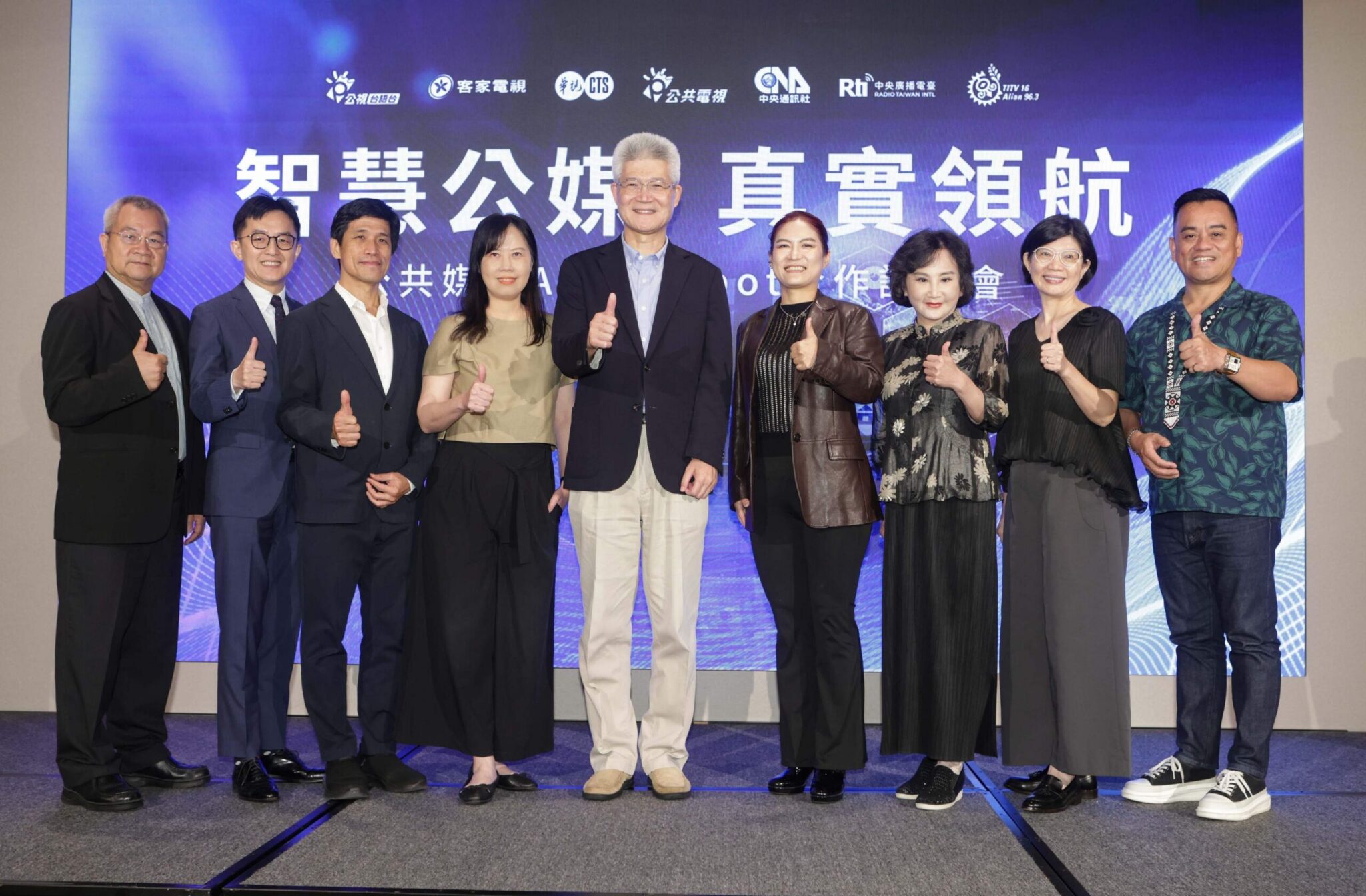 台灣公共媒體界迎來歷史性時刻。AI科技帶來的挑戰與機遇,為讓AI發揮正面潛能,公廣集團董事長胡元輝與中央通訊社、中央廣播電台、原住民族電視台等公共媒體代表齊聚,共同宣布啟動「公共媒體AI Chatbot合作計畫」,也標誌著台灣公共媒體在AI時代的重要轉型里程碑。