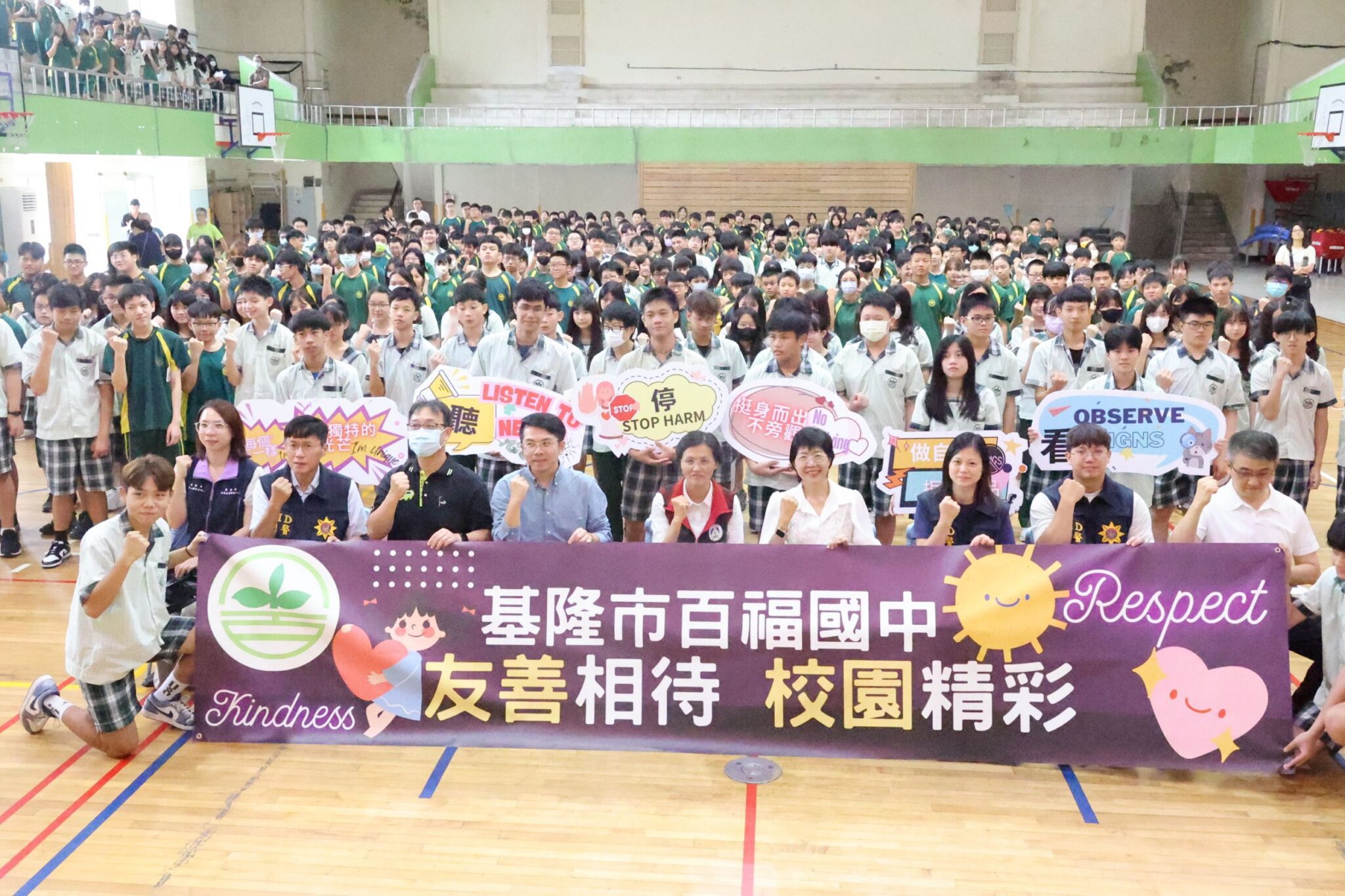 為推動教育部友善校園政策,基隆市政府持續響應並將每學期開學第一週訂為「友善校園週」,與全市各級學校攜手合作辦理相關宣導活動。今年114學年度第一學期,在今9月2於本市百福國民中學舉行「友善校園週擴大宣誓活動」,以今年度主題「停!聽!看!一起『調』出『和』諧的友善校園!」為核心,強化全體師生對校園霸凌防制、友善人際互動與建立正向求助意識的重視與實踐。