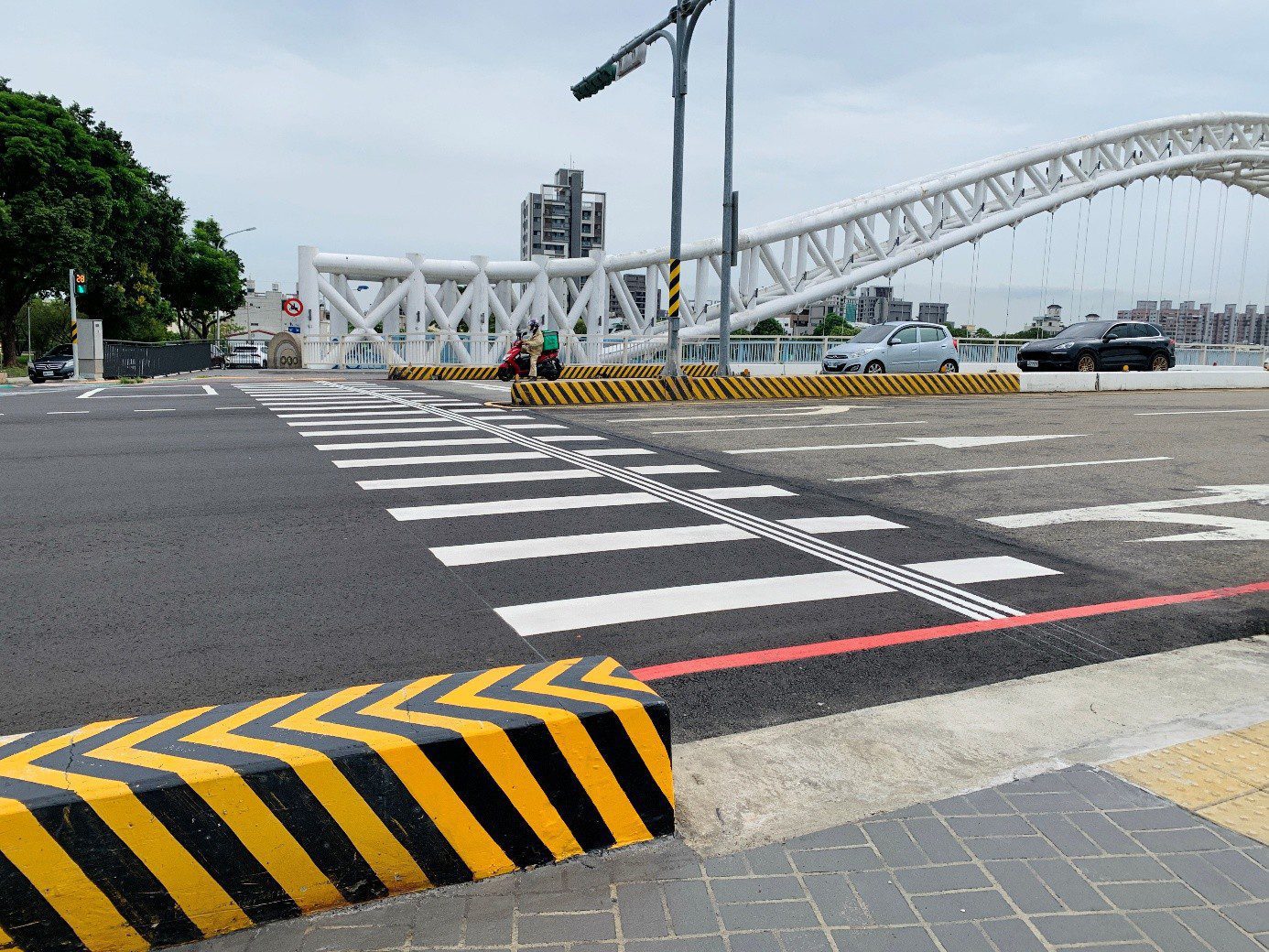 陳局長進一步說明,該工程總經費4,017萬元,由國土管理署與市府各負擔5成,於去年12月9日開工,今年8月10日完工,並於8月26日驗收合格後全段開放使用。工程以「人本友善」為核心,針對旱溪東路三段沿線路口,在維持車道寬度、不影響交通的前提下,將行人停等區外推,擴大街角空間,並增設無障礙坡道與連續植栽綠帶,營造安全、舒適且適合各族群使用的友善步行環境。