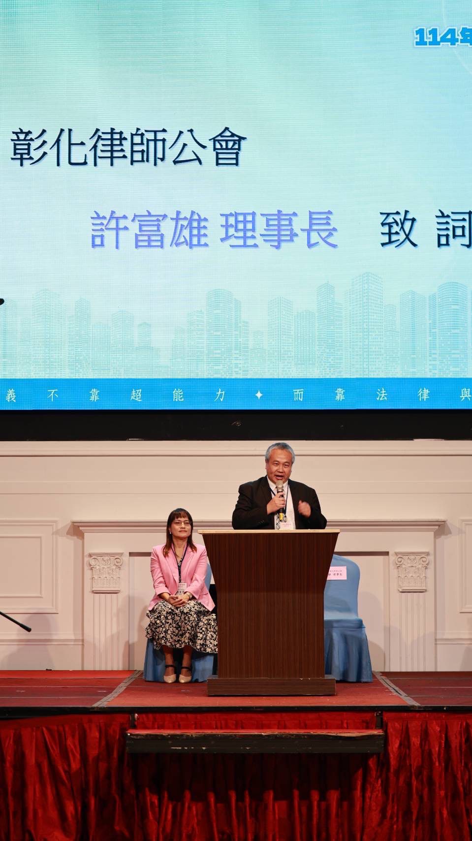 李局長轉達市府祝福,祝福所有律師朋友律師節快樂,並強調律師是社會公平正義的重要守護者,也是民主法治不可或缺的中堅力量。他指出,台中市政府與律師公會長年合作,推動多元法律服務,僅113年即服務超過27,000件法律諮詢,114年截至7月已突破14,800件。從夜間電話諮詢、專科法律服務、勞資爭議調解,到校園法治教育與大型市政活動公正見證,都有律師專業的身影,市府對此深表感謝。