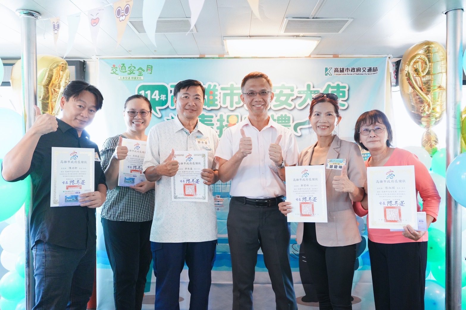今年特別將表揚典禮安排在高雄港最美麗的 𝗞𝗔𝗞𝗔𝗢 𝗙𝗥𝗜𝗘𝗡𝗗𝗦 彩繪真愛輪上舉行,不僅展現高雄港灣城市的獨特風貌,也讓交安大使們在輕鬆氛圍中交流經驗、分享成果。此外,九月正值全國交通安全月,推廣交通安全觀念是一項持續不懈的工作。未來,交通局將從工程改善、教育宣導及交通執法三個面向多管齊下,透過實際行動改善道路環境,守護市民用路安全,共同打造更友善的交通環境。