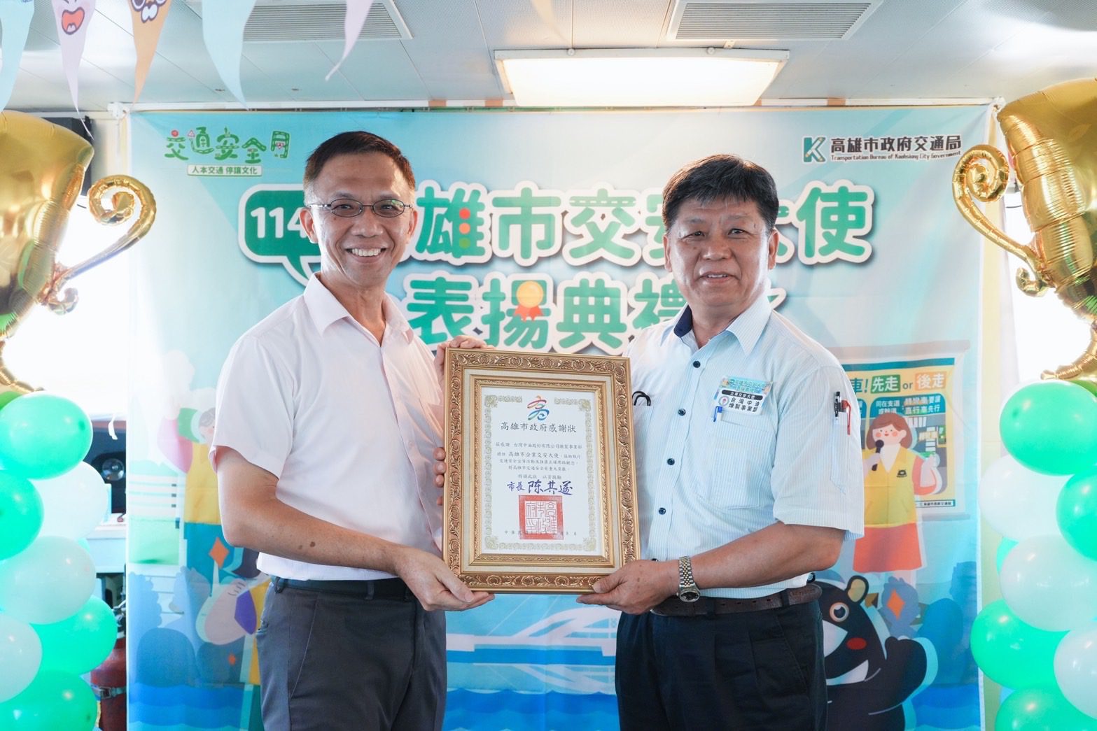 今年典禮特別邀請台灣中油股份有限公司與台鋼雄鷹棒球隊股份有限公司代表出席,作為「企業交安大使」的典範。兩大企業不僅帶動員工培養正確用路觀念,更積極將交通安全教育融入企業文化,發揮產業影響力,推廣到家庭及社區,成為高雄交通安全推廣的重要力量。