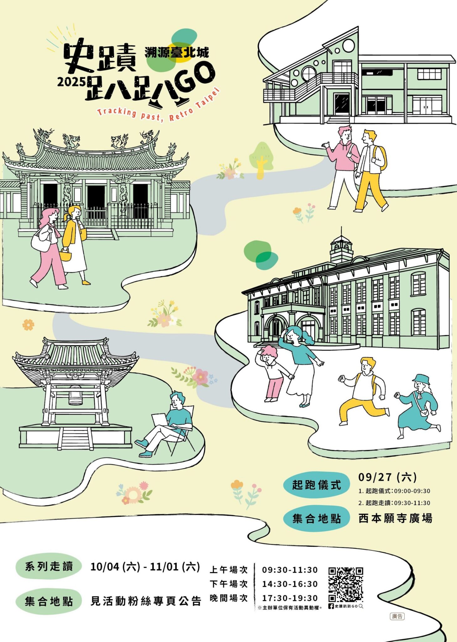 深受市民朋友喜愛的「史蹟趴趴GO」系列導覽活動準備出發囉!臺北市立文獻館首發場次將在9月27日於西本願寺廣場盛大登場,11日(週四)上午10時起開放線上報名。