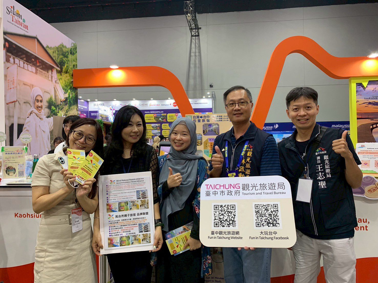 隨團業者陣容堅強,包括台中市民宿協會、烏日璞旅、武陵農場、福壽山農場等,不僅現場積極推廣,更與當地旅行社洽談合作,爭取上架台中行程。值得一提的是,馬來西亞知名旅遊網紅 SoyaBelacan 與 J旅Just Travel 特別造訪台中攤位拍攝,進一步提升台中在社群與網路的曝光度。