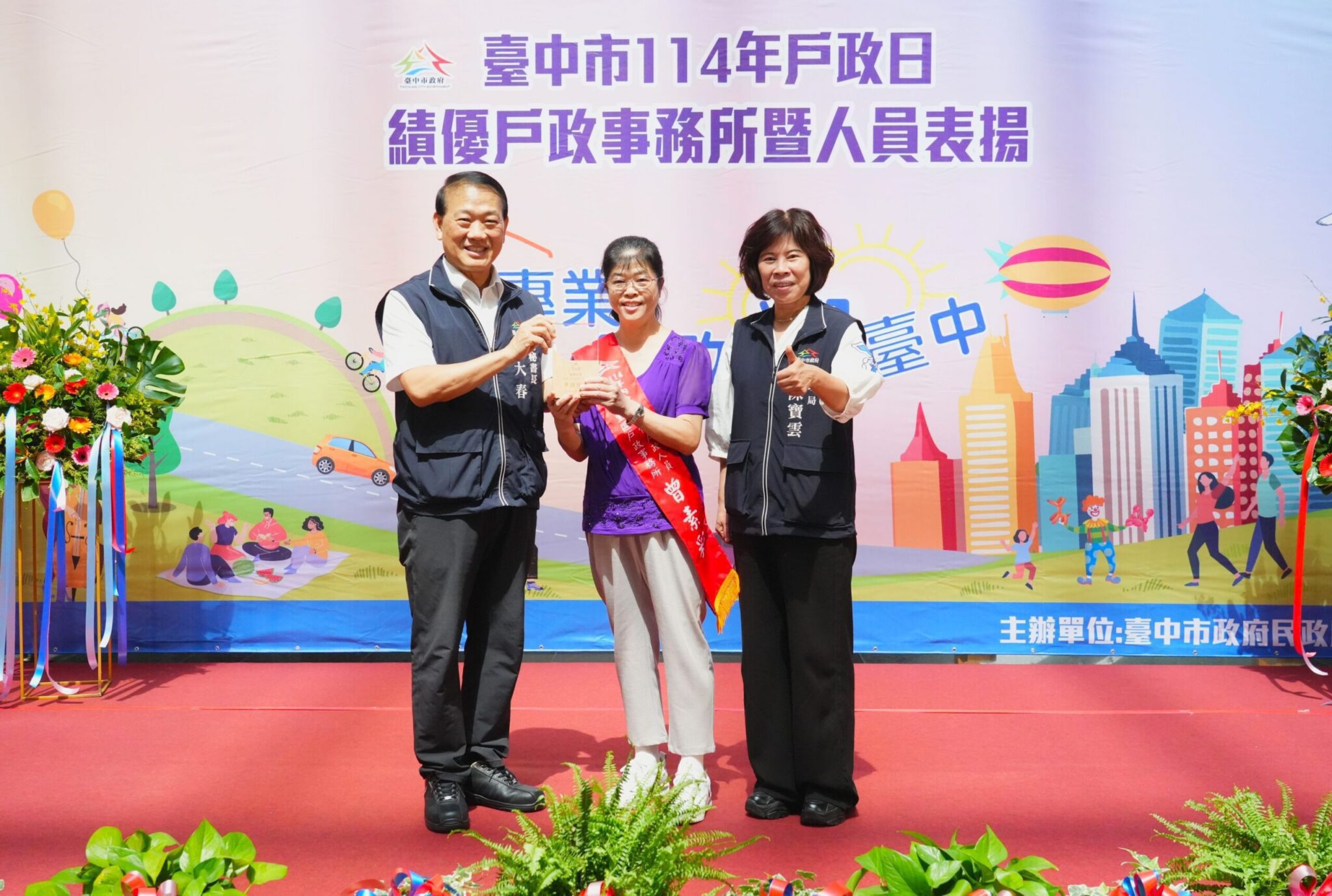 民政局補充,市府致力提升戶所服務品質穩及競爭力,在全體戶政同仁的努力下,台中市戶政業務近年屢獲內政部評鑑「優等」,113年度更在國籍行政、人口統計、資訊安全及人員培訓等面向榮獲「滿分」佳績,感謝中央肯定及同仁付出,並期勉戶政團隊持續秉持專業與關懷精神,提供市民更優質便捷的戶政服務。