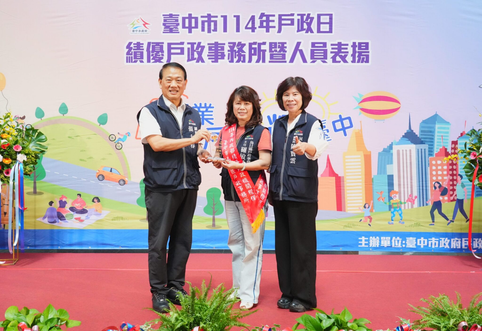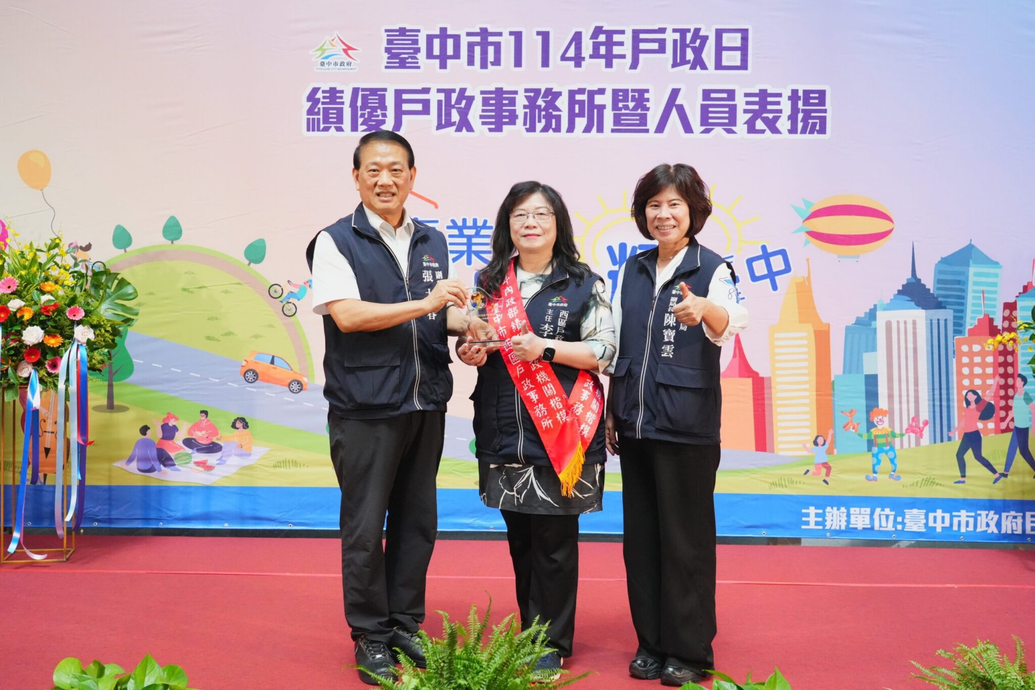 民政局長吳世瑋指出,戶政服務一向是台中市民滿意度最高的項目之一,各戶所致力確保戶籍登記正確無誤,落實資訊安全管理與個人資料保護,同並掌握作業時效,即時保障民眾權益。其中潭子、大里、西區、北區、東勢、烏日、大肚、后里及外埔戶所,榮獲台中市113年評鑑績優戶政機關肯定;另西區及烏日戶所亦榮獲內政部114年績優戶政機關,展現卓越服務成果,並期勉持續以嶄新思維及創新作法,打造多元便民的戶政服務體驗。