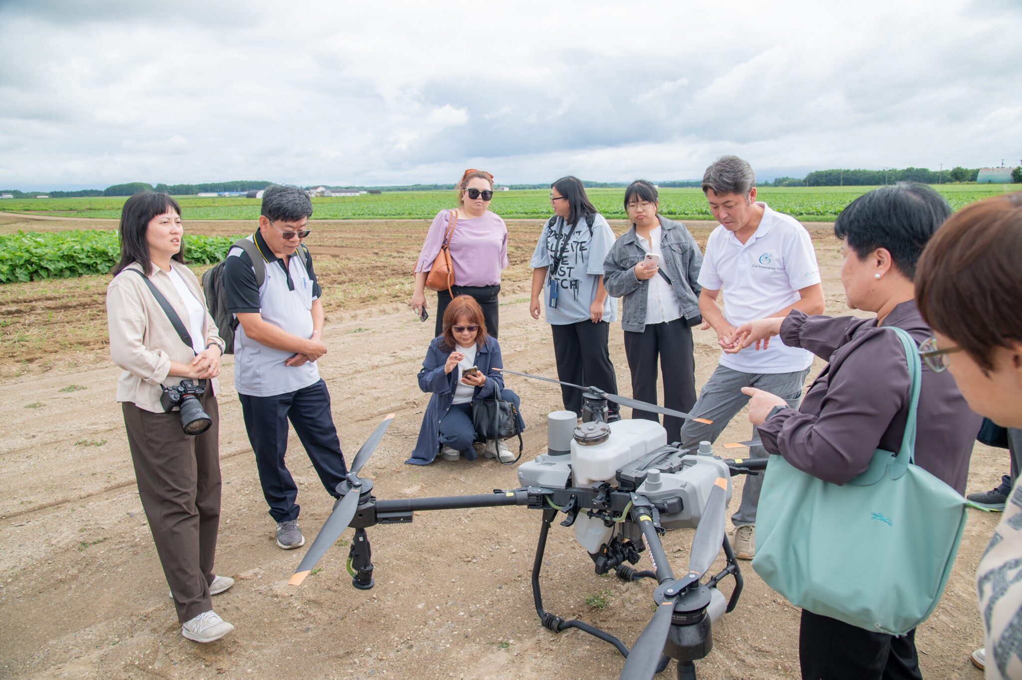 農業部分,則參訪福田農場與第21營農集團,去年福田農場成功突破高緯度氣候限制,首次成功種植稻米,為北海道農業創新里程碑。第21營農集團則運用衛星影像與智慧農機,進行馬鈴薯、長芋及川芎等作物的精準管理,讓嘉藥USR團隊與青農楊子賢獲益良多,雙方針也對共生種植與病蟲害防治進行深度交流。