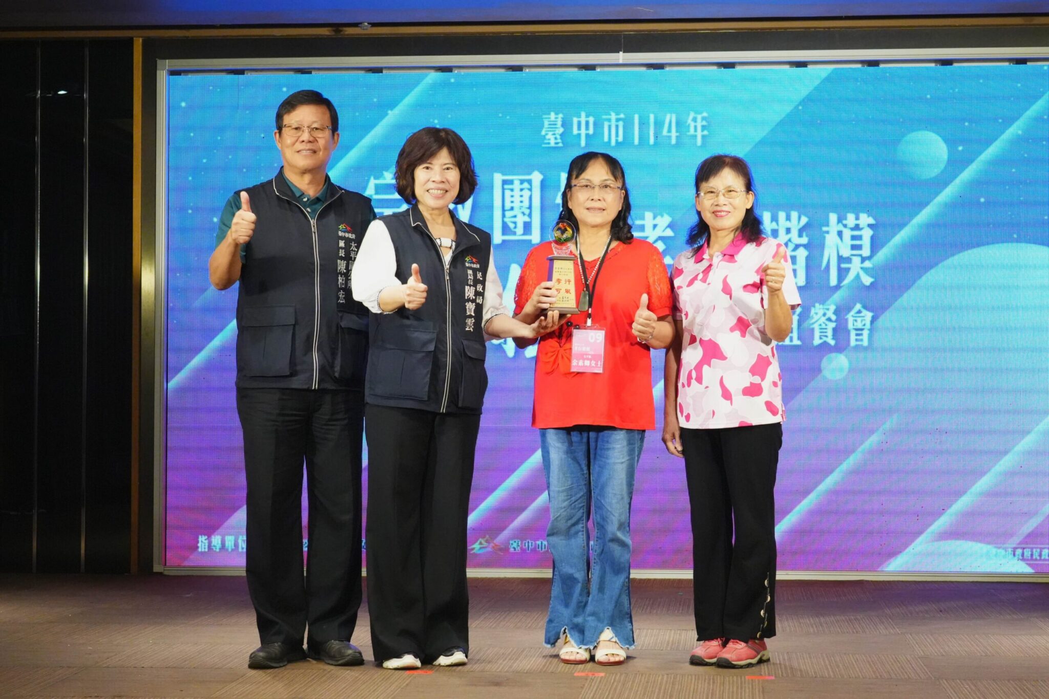 另,太平區余素卿女士毅然放下職涯,專注照護罹患氣喘與肺疾的公公,即使疫情期間病況惡化,仍透過長照與居家醫療悉心守護,展現專業與孝心兼具的精神;另新社區陳茂盛先生視繼母如生母,與家人三代同堂悉心照料,孝行義舉成為鄰里佳話。四人也同時榮獲內政部114年「全國孝行獎」,是當今孝行的最佳典範。