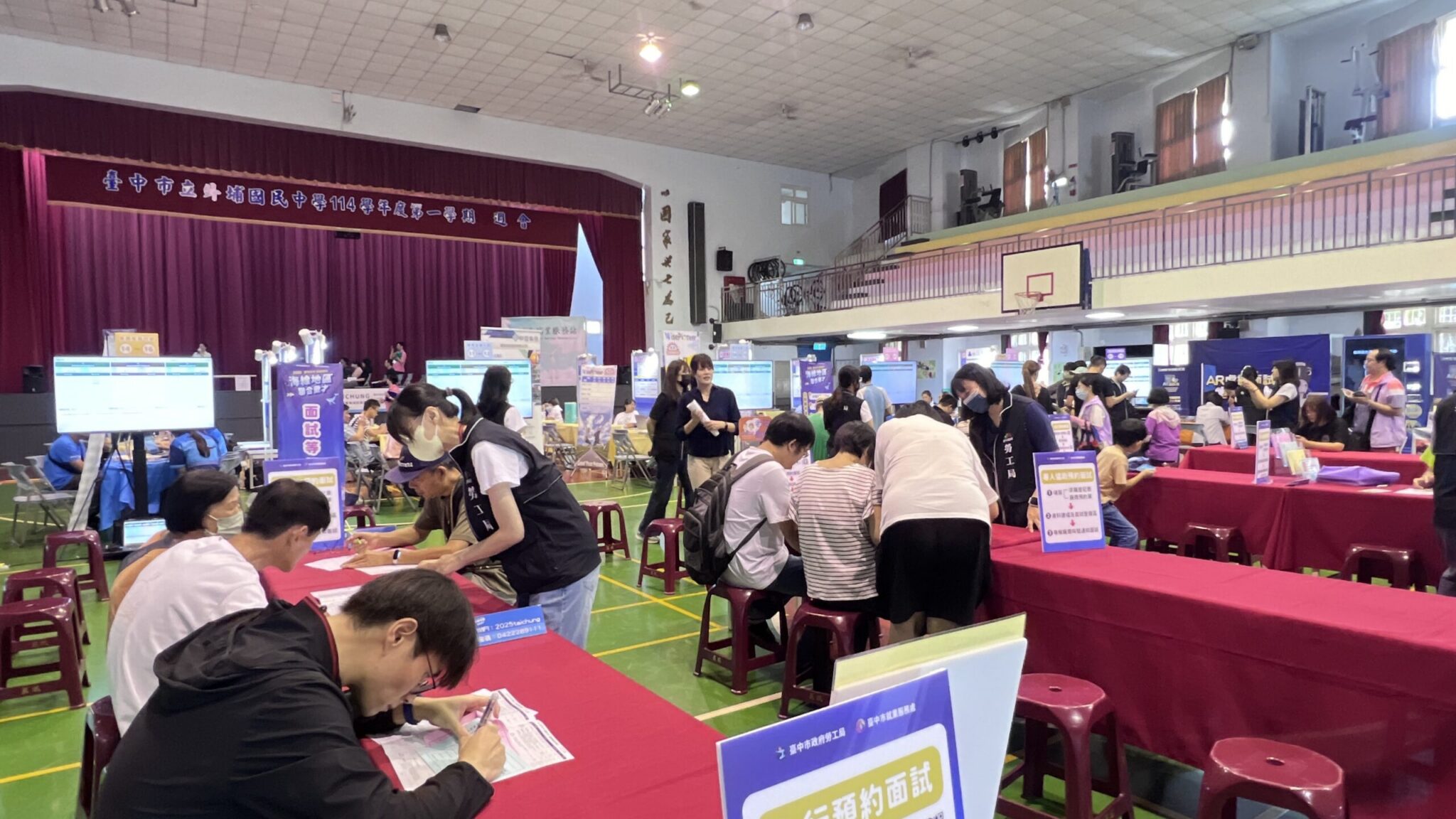 台中市政府勞工局今(13)日於外埔國民中學,舉辦2025「富市台中 就業成功」海線地區聯合徵才,現場邀請永信藥品、台中眾鈴、麥當勞等19家優質廠商共襄盛舉,提供623個工作機會,現場氣氛熱絡吸引逾300位求職民眾參加,初步媒合率逾五成!