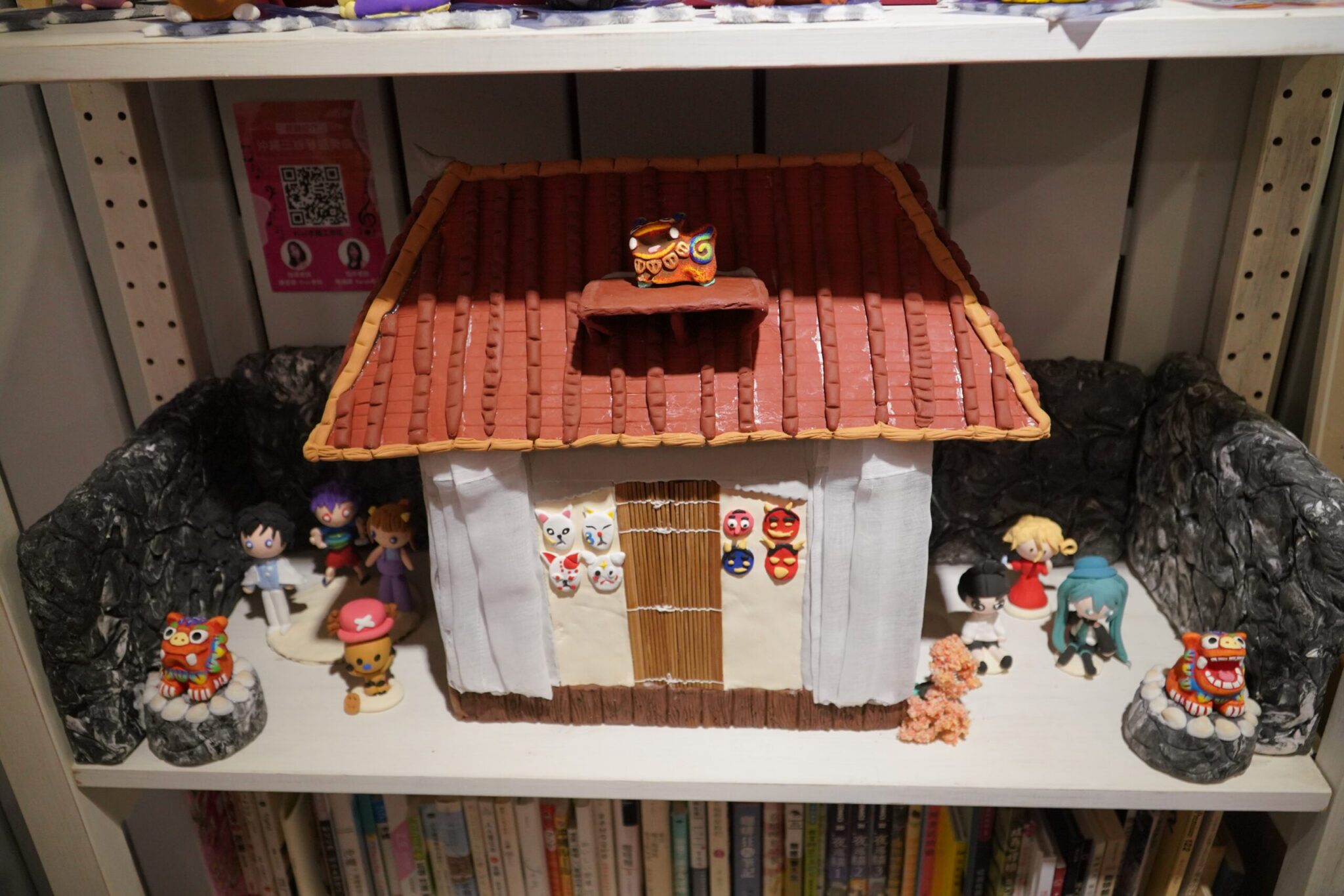 現場作品還包括石垣島的石牆建築、家門口的石獅子、以及擬真花卉,細節中蘊含濃厚的島嶼文化氣息。觀展民眾表示,在咖啡香氣中欣賞作品,再搭配三線琴的背景音樂,彷彿置身沖繩,感受到一份難得的放鬆與療癒。